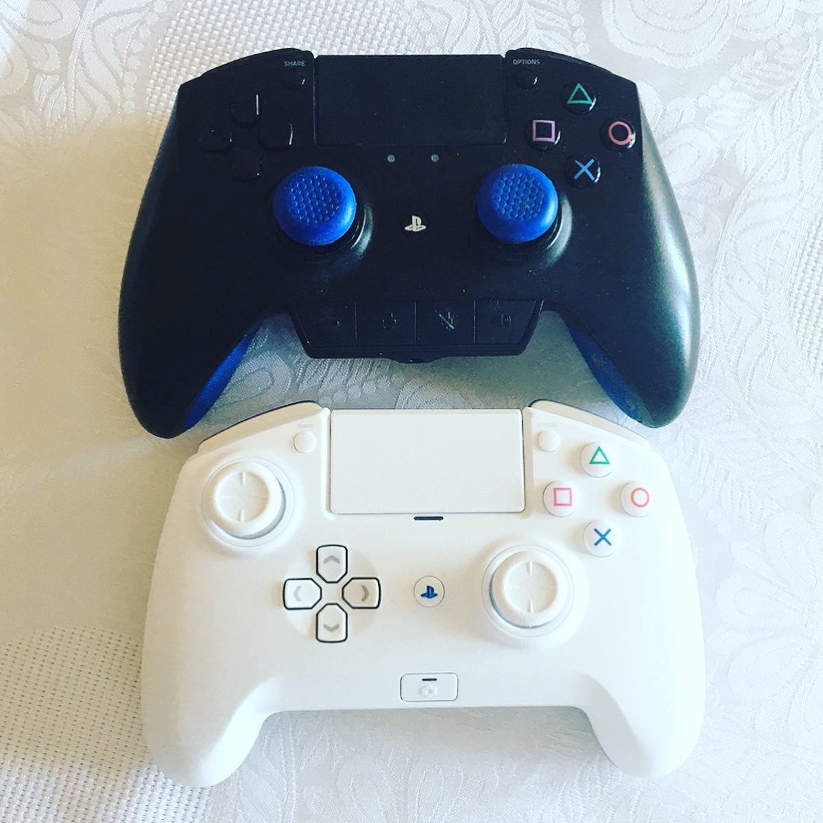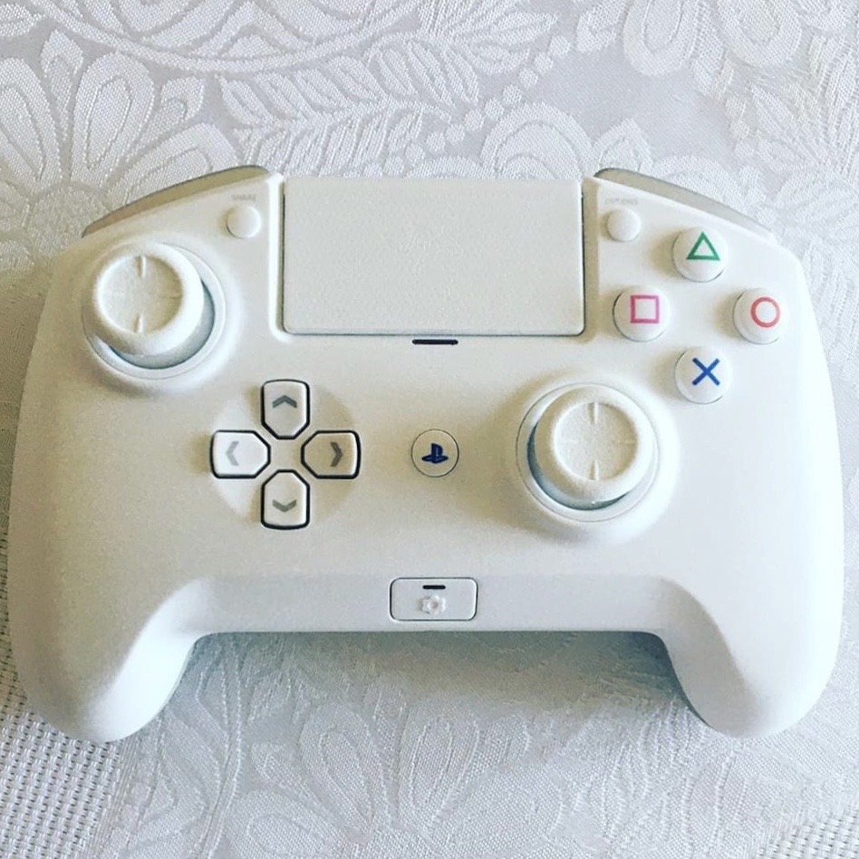 La première chose que l’on remarque en regardant ce modèle c’est l’emplacement asymétrique des Joysticks. À l’instar d’une manette Xbox, vous pourrez plus facilement diriger votre personnage grâce à un joystick gauche mieux placé que sur une manette classique. La croix directionnelle, quant à elle, se retrouve donc au côté du joystick droit, ce qui n’est pas plus mal je trouve personnellement. (J’ai tout de même tendance à appuyer sur la touche PS en faisant des quarts-de-tours dans les jeux de combats…)