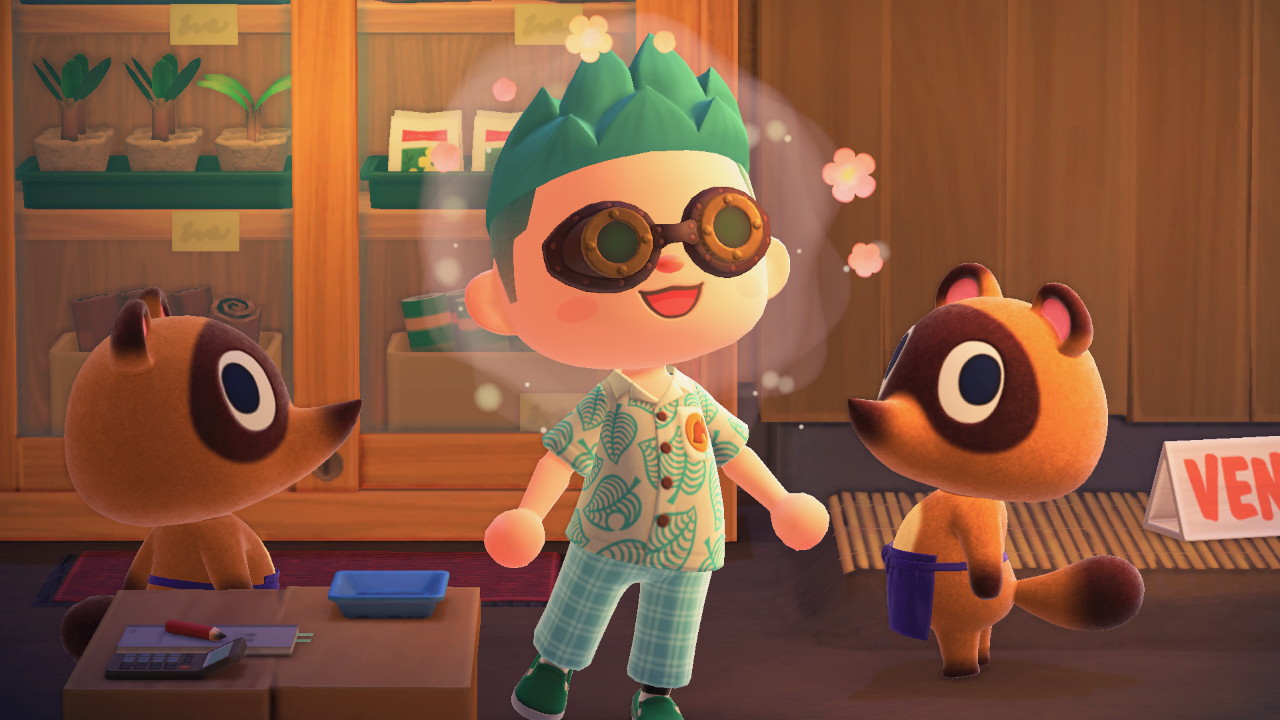 Tout d’abord, si vous ne connaissez pas cette licence, il s’agit d’un jeu où vous devrez mener tout simplement votre vie, en achetant une maison, en développant vos relations avec vos voisins, etc. Cela afin d’améliorer le quotidien de votre ville… Seulement voilà, dans cet opus, vous débarquez carrément sur une île déserte, ce qui signifie que vous devrez entreprendre tout depuis zéro. Après avoir choisi l’emplacement de votre tente de camping, arrachez les mauvaises herbes, cela vous rapportera vos premières clochettes (monnaie du jeu). Secouer les arbres, cueillir des fruits, couper du bois, ou encore pêcher, sera votre quotidien. Et pour arriver à faire tout cela et bien plus encore, il vous faudra crafter des outils ! Sachez dès à présent que ces derniers possèdent une durée de vie, ce qui signifie qu’il vous faudra les améliorer au fil du temps. Toutes vos activités seront surveillé de près par Tom Nook, le raton laveur à qui vous devez cette escapade. C’est d’ailleurs lui qui vous aidera à vous loger moyennant quelques clochettes (ton ironique).