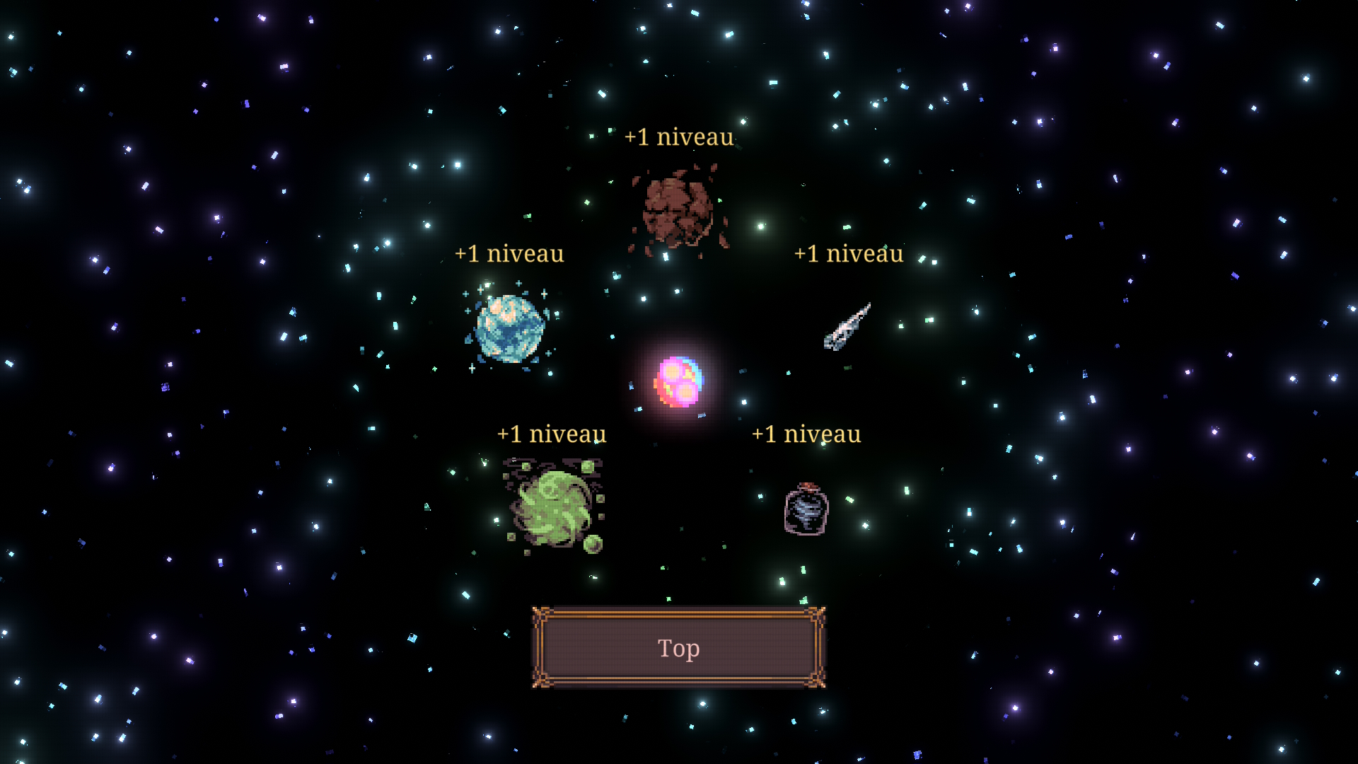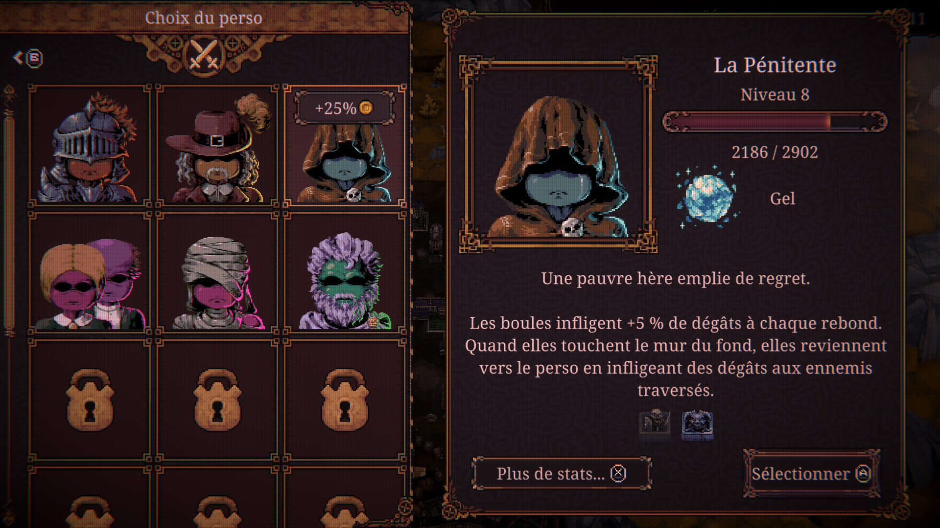 Chaque héros à ses spécificités, par exemple les Jumeaux tirent deux fois plus de béboules, ce qui facilite grandement les affrontement, mais contre les boss, il vous sera plus difficile d’esquiver les multiples tirs adverses. Durant votre progression, vous aurez l’occasion de booster vos statistiques et de débloquer de nombreuses béboules aux pouvoirs dévastateurs. Sachant que chacune d’entre elles pourra évoluer et même fusionner. C’est simple, cette idée de combinaisons de pouvoirs et d’évolutions est tout bonnement géniale !! Les graphismes en Pixel Art et surtout le sound-design ultra satisfaisant vont vous happer, soyez en certains !