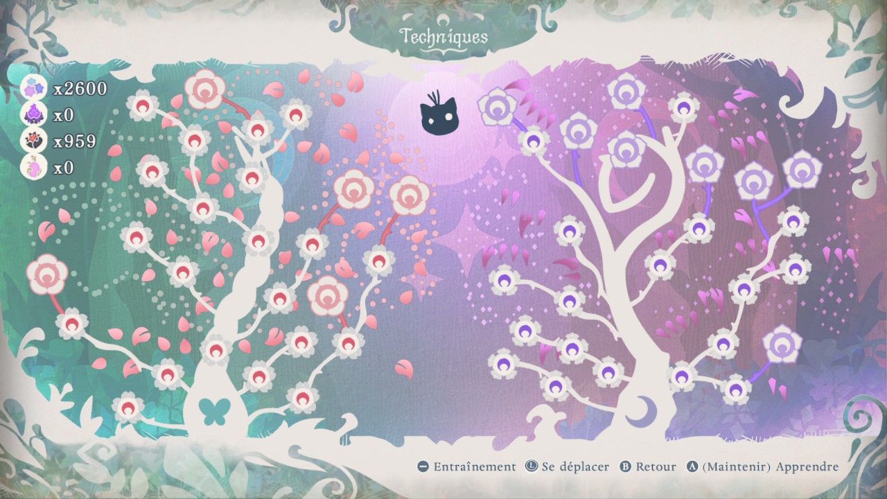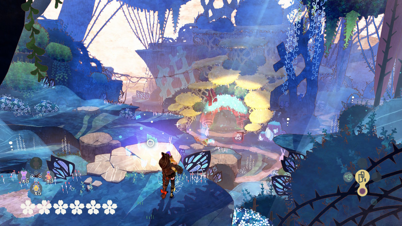 Vous l’aurez compris, le soft nous est présenté comme un véritable conte pour enfant, aussi bien dans sa narration que visuellement parlant. Les jolis graphismes avec cette Direction Artistique aquarelle très colorée accompagnent parfaitement l’idée du bouquin qui tourne ses pages au fur et à mesure de votre récit. Je vous l’ai dit un peu plus haut, son gameplay asymétrique est vraiment original et rafraîchissant. Comprenez par là qu’il vous faudra beaucoup de dextérité, puisqu’avec la main gauche vous contrôlerez Cereza, et avec la droite vous contrôlerez Chouchou, son ami démoniaque. Et comment dire ? Cela sera loin d’être évident au départ…
