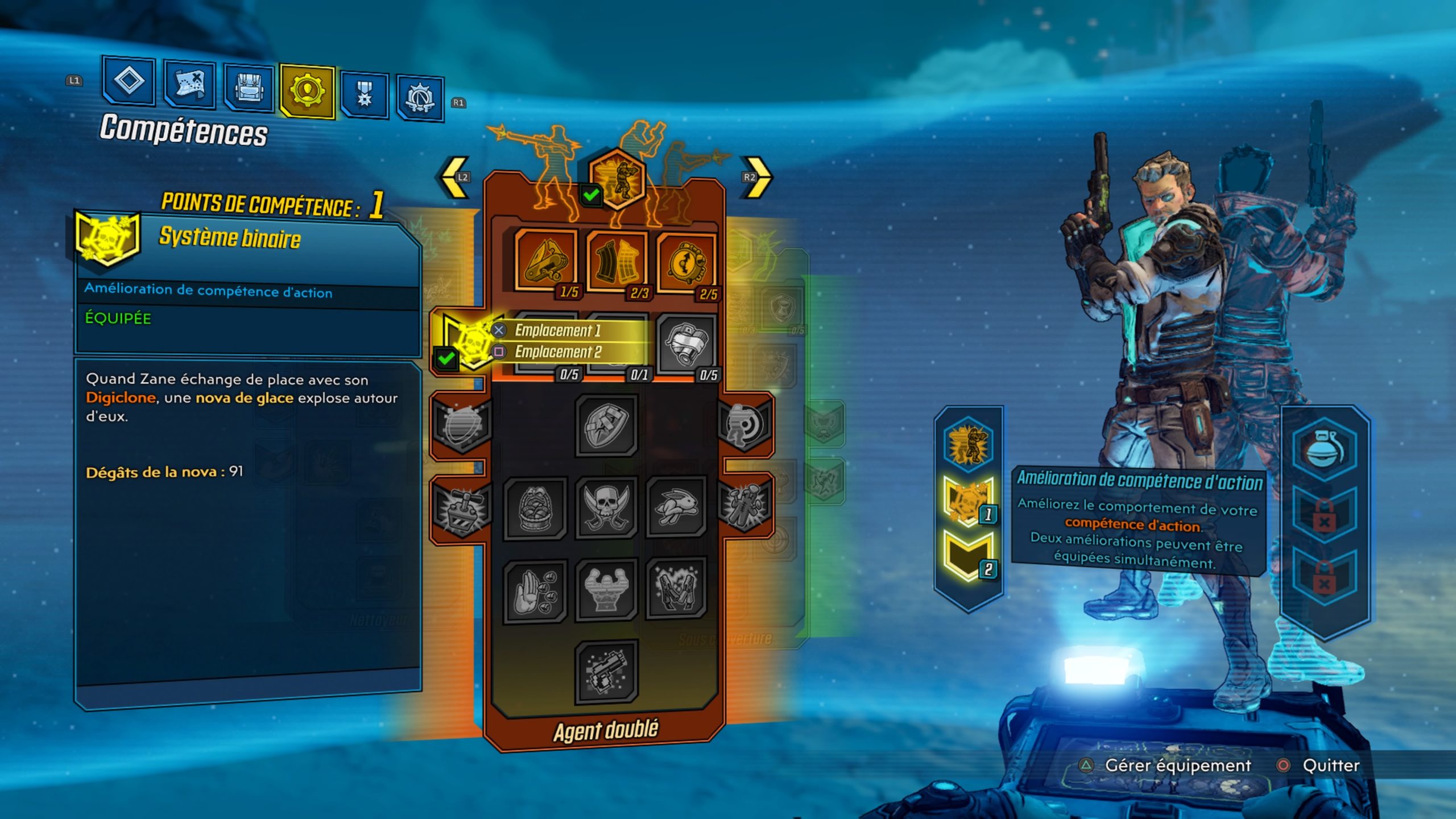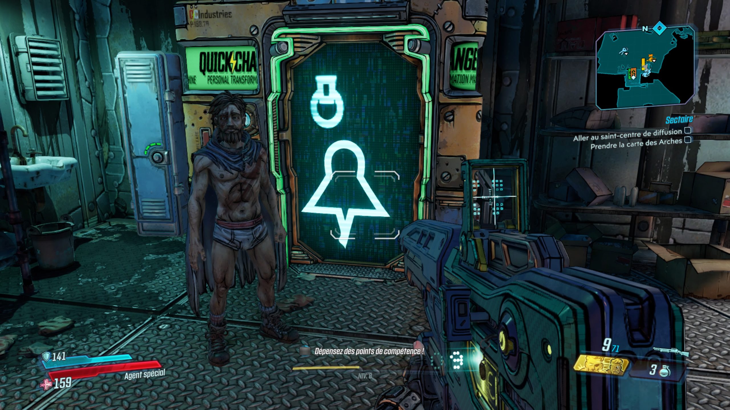Commencez par sélectionner votre héros, sachant que chaque personnage possède différentes aptitudes qu’il vous faudra choisir méticuleusement, selon votre façon de jouer ou vos envies. Par exemple, je suis moi-même parti pour jouer avec Zane l’opérateur et son digiclone. Il faut d’ailleurs souligner que chacun des protagonistes possède des arbres de compétences plutôt sympas et bien fournis. Il vous sera également possible de vous personnaliser, toujours un peu plus… Partez à la recherche de la grande Arche dans ce titre totalement disjoncté, à l’humour un peu trop lourdaud et insistant à mon goût. Les gunfights sont fun et surtout plus nerveux qu’auparavant et vous permettent de looter tout un tas d’armes diverses et variées.
