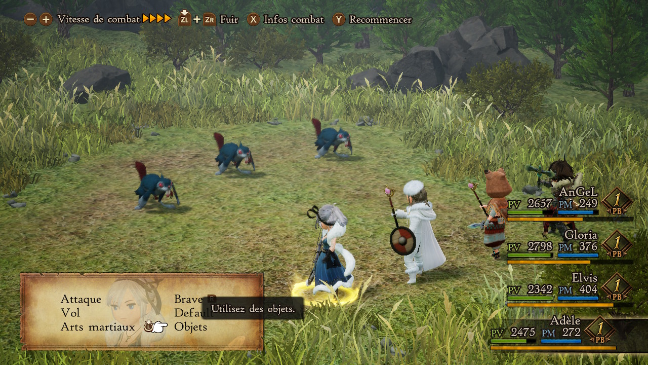 Avec son excellent système de combat, et son principe de Brave (utiliser plusieurs tours) et Default (se protéger et sauvegarder des tours pour plus tard), vous allez pouvoir adopter différentes stratégies, ce qui est tout simplement bien pensé et extrêmement satisfaisant ! Très addictif donc par son gameplay mais aussi par son scénario, fait de nombreux rebondissements, le jeu saura capter toute votre attention et ce pendant plus d’une soixantaine d’heures. Seront mises à votre disposition, une multitude de classes différentes, que vous pourrez équiper et améliorer à tout moment, une fois ces dernières débloquées tout au long du jeu. Sachez que pour vous éviter de trop farmer, le soft propose également des voyages en ligne afin de récupérer des bonus, pendant que votre console sera en veille. Une autre fabuleuse idée en soit !