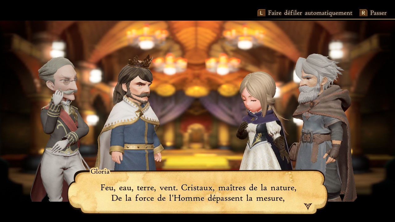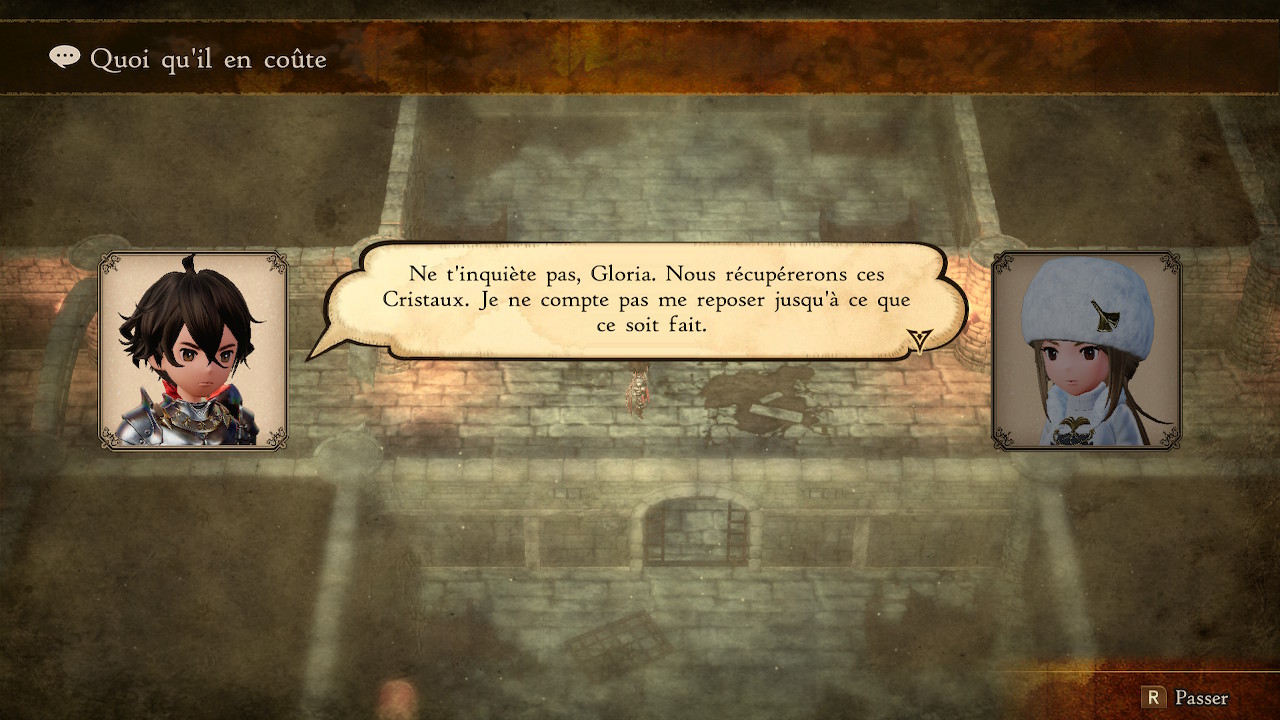 Parlons maintenant de la direction artistique, assez particulière au premier abord mais ultra réussie, surtout pour le rendu des villes et des différents panoramas. Sans oublier la magnifique OST signée Revo (L’Attaque des Titans, …). Dommage que le titre soit techniquement faiblard. Entre aliasing et chutes de framerate, il faudra s’y habituer. Bien que franchement, ce ne soit pas vraiment gênant, je dois l’admettre. Pour chipoter encore un peu, il est vrai que la structure de ce Bravely Default II est assez répétitive dans sa construction. Mais bon, c’est vraiment pour essayé de trouver un défaut au jeu… Quant à la difficulté parfois déconcertante, elle n’en restera pas moins gratifiante ! Ah, et pour finir, il existe un excellent mini-jeu de cartes sur lequel je vais très certainement m’attarder, dans une nouvelle partie +.