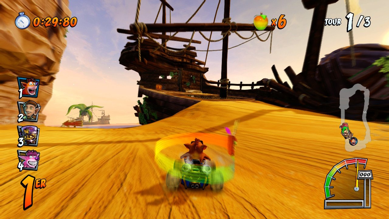 Sorti le 21 Juin 2019, ce jeu de course vous propose d’affronter tout un tas de personnages tirés de la trilogie des Crash Bandicoot, sur des circuits tous aussi inspirés. Pour ce remaster le titre a subi un sérieux lifting, ce qui le rend assez joli et agréable à voir. Sa bande-son a notamment été retravaillée et l’on retrouve avec plaisir son gameplay fun et accrocheur. Petit bémol tout de même, il est impossible de configurer soit-même les touches ! Le soft étant difficile à manier, surtout en ce qui concerne le système de boost, j’ai personnellement beaucoup de difficultés à appuyer sur les bonnes touches à cause de mon handicap.
