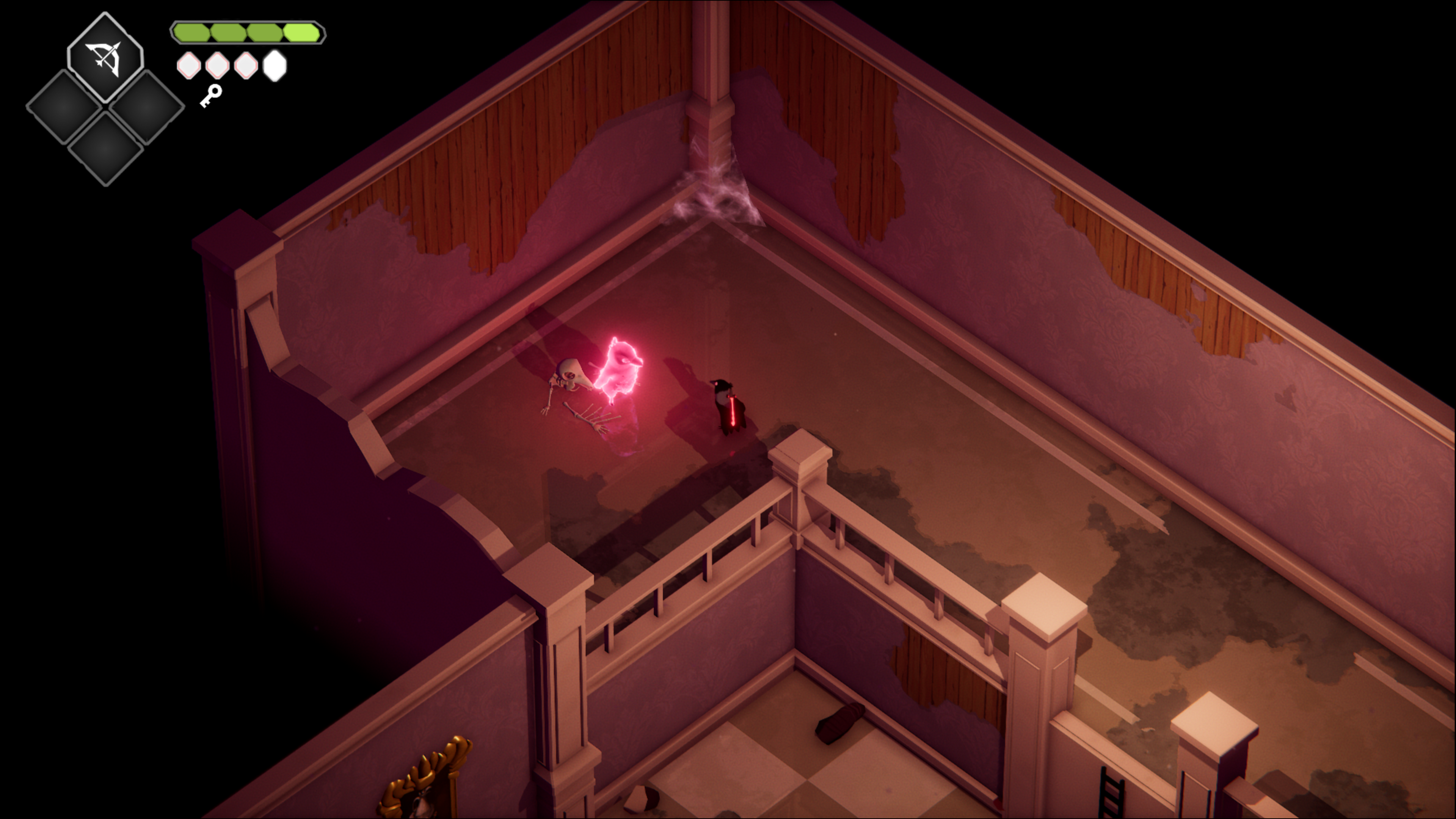 Embarquez donc dans cette aventure pour le moins épique, en 3D isométrique, aux commandes d’un p’tit corbeau qui se rend pour la première fois à la commission des faucheurs. Cette dernière vous enverra donc récolter un âme et c’est ainsi que débutera votre épopée. La prise en main est immédiate, et bien que je trouve l’esquive quelque peu imprécise, ce qui m’aura valu de nombreuses défaites, le soft de Devolver Digital vous obéira au doigt et à l’œil. Son gameplay se montre à la fois exigeant, nerveux et efficace ! Certains boss vous donneront du fil à retordre, ce qui rend chaque victoire satisfaisante.
