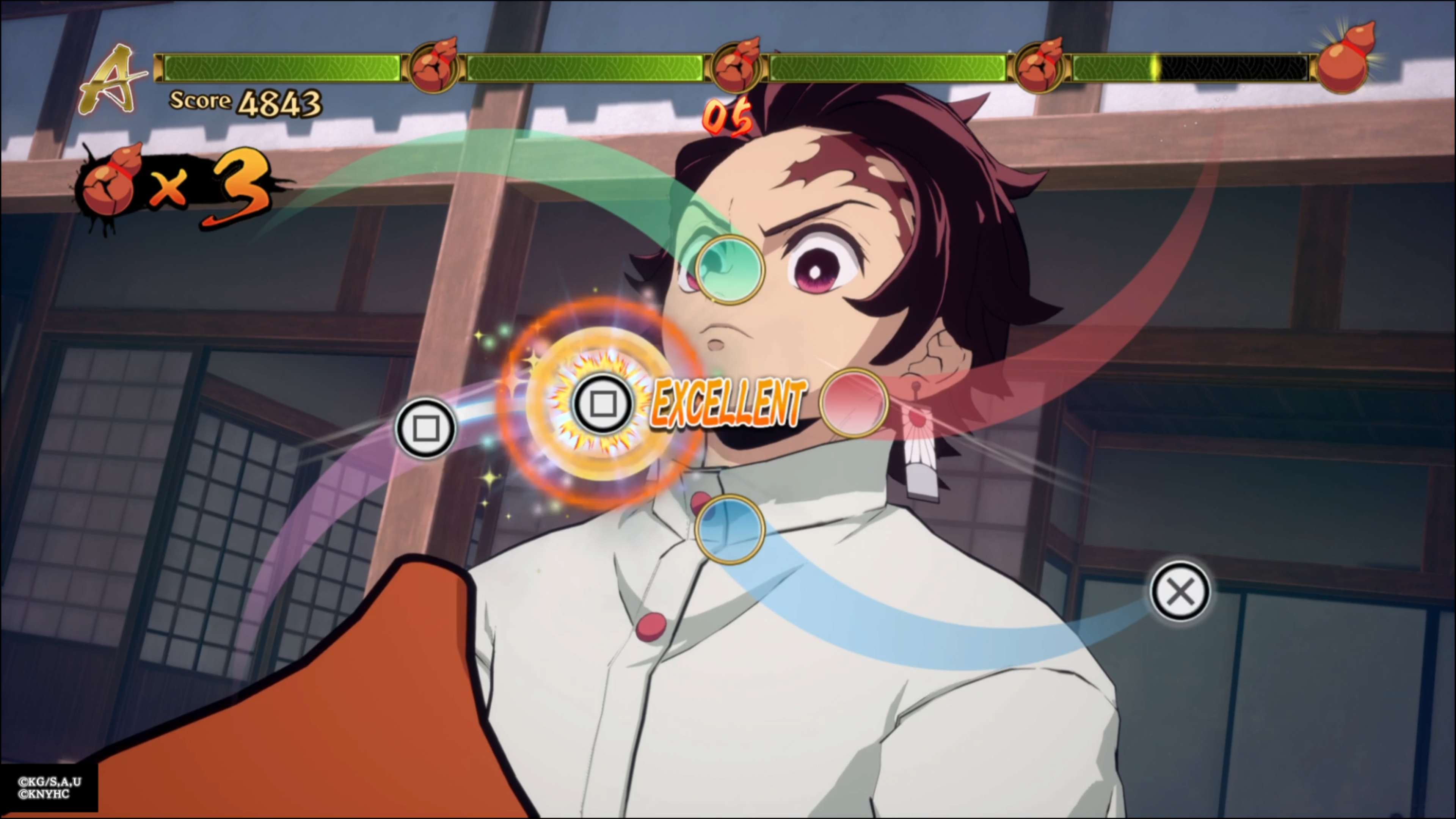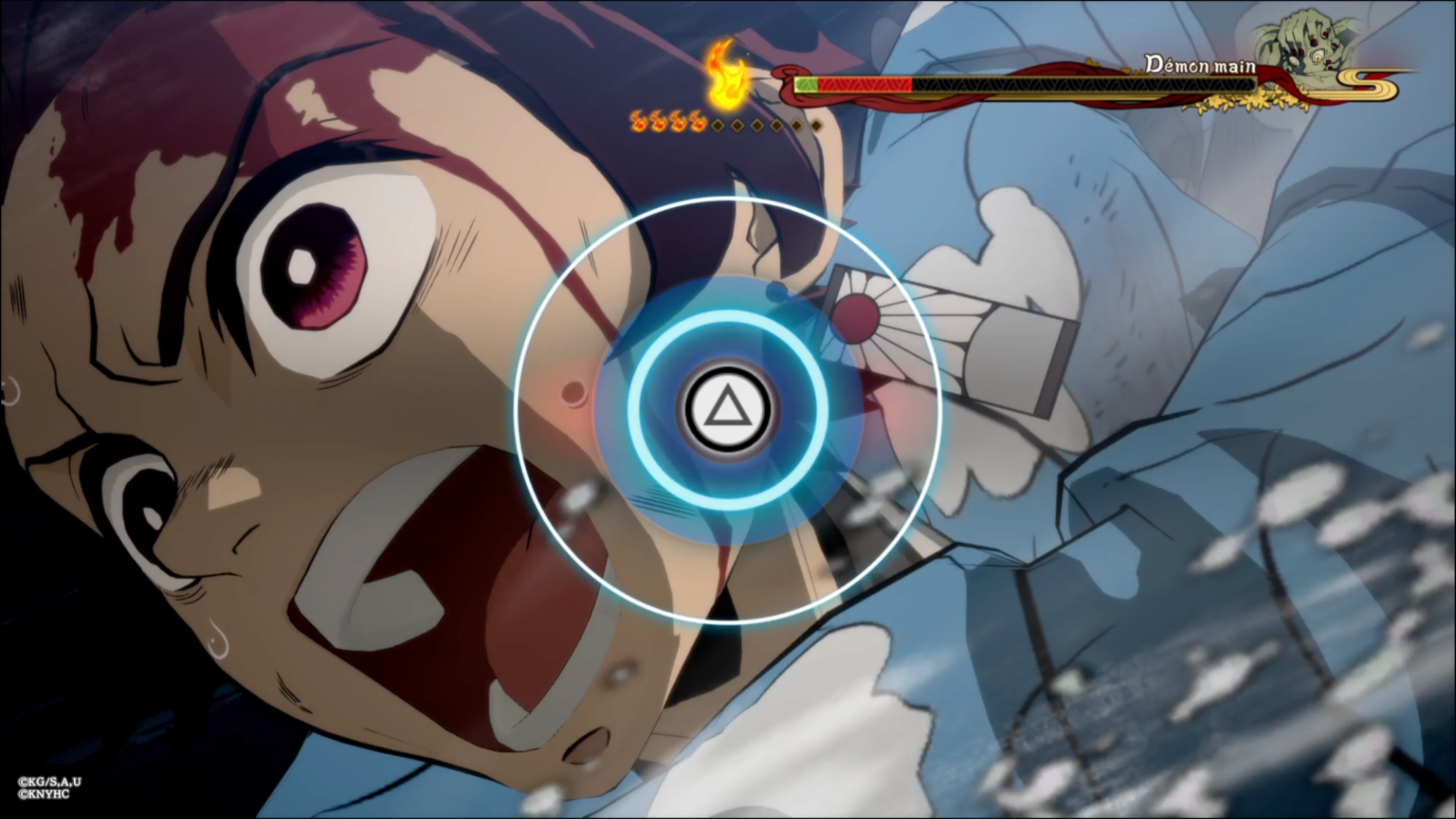 Tout d’abord, le titre de Sega propose que très peu de modes, et ces derniers sont des plus classiques au possible ! Commençons si vous le voulez bien par le mode Histoire, qui va de l’entrainement intense de Kenjiro* avant la cérémonie des pourfendeurs de démons, à l’épisode du train de l’infini. Soit une très courte période pour les connaisseurs du manga. Et donc, rien de nouveau à se mettre sous la dent côté scénario. Mais pour ceux qui souhaitent découvrir ce début d’aventure, ce mode permettra aux novices de rattraper leur retard. D’autant plus que le soft reste super fidèle à l’œuvre originale. Accompagné de certains morceaux de la sublime OST des animés, et d’une VOSTFR de qualité, vous vous confronterez aux nombreuses épreuves que Monjiro* et ses amis ont rencontré dans le manga.