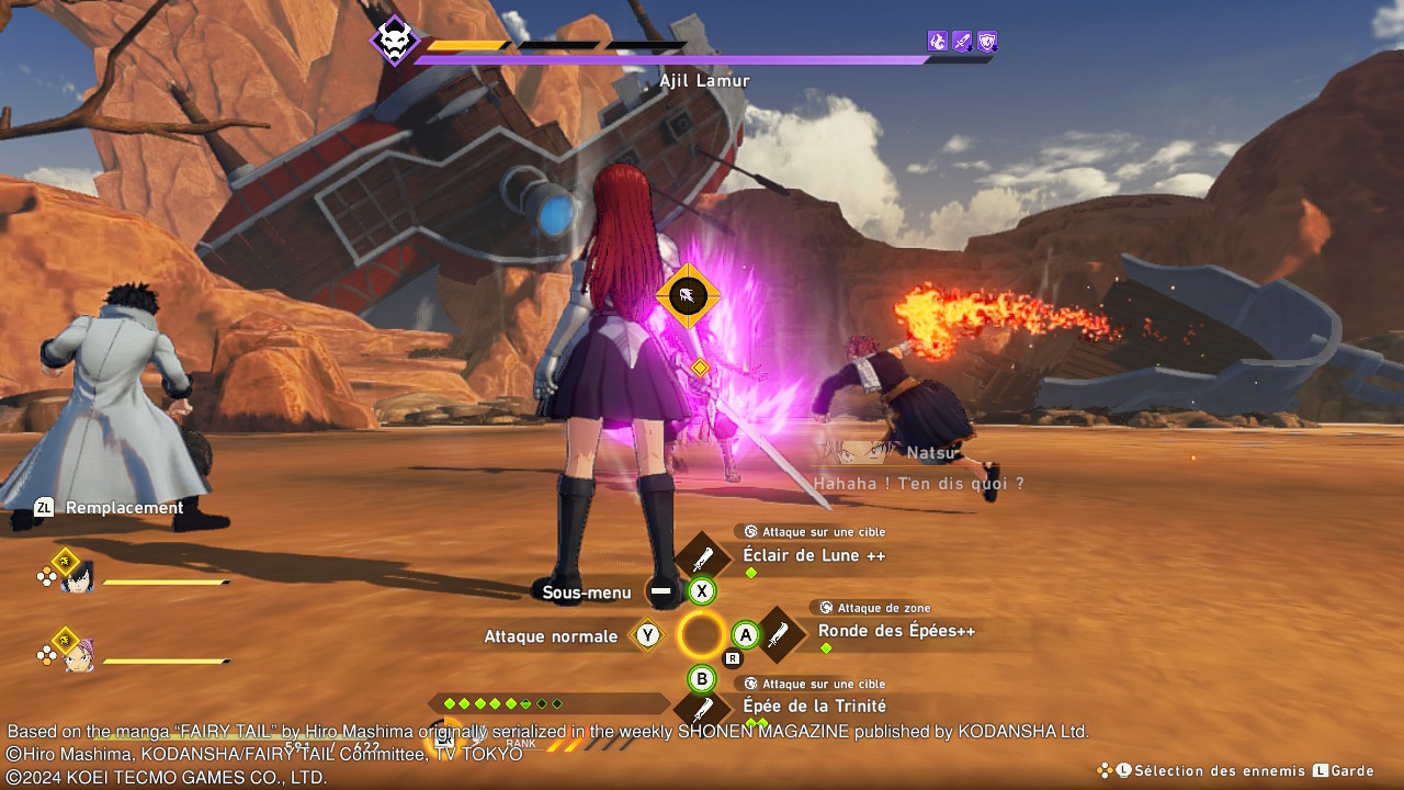 On ne va pas se mentir, le jeu est avant tout pensé pour faire plaisir aux fans du manga éponyme de Hiro Mashima. L’histoire est intéressante et se laisse suivre facilement. Cela reste très fidèle, le roaster est assez complet et l’OST fonctionne vraiment bien. D’un point de vue gameplay, on reste sur du tour par tour, mais en beaucoup plus dynamique. Avec ses (trop) nombreuses jauges qui se rempliront au fur et à mesure du combat pour ensuite lâcher de plus grosses attaques. J’ai trouvé l’ensemble intéressant, tapant dans le fan service à gogo ! Ce qui est plutôt plaisant ma foi, bien qu’assez simplifié notamment sur les arbres de compétences.