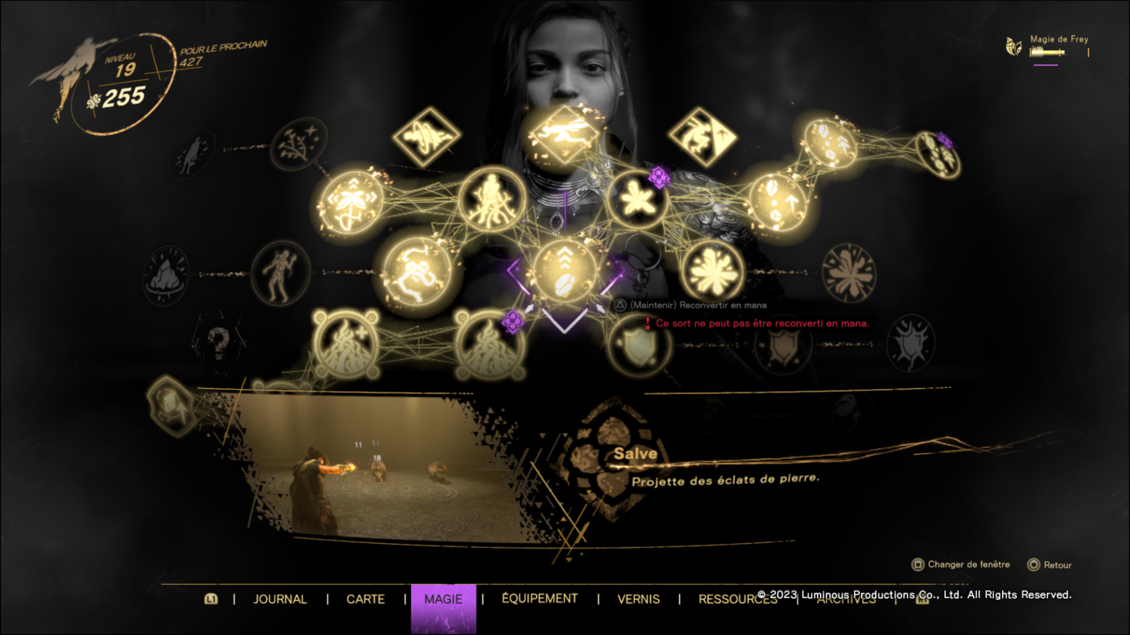 Le gameplay quant à lui est ultra jouissif, à partir du moment où vous penserez à verrouiller vos cibles pour éviter une caméra folle. Entre le parkour d’une simplicité déconcertante, les sorts d’attaques à distance ou au corps à corps, et j’en passe pour ne pas trop spoiler, vous aurez de quoi faire. Je me souviens qu’après avoir amélioré un bon nombre de sortilèges, j’ai débloqué d’autres arbres de compétences. Un vrai bonheur !! La montée en puissance de notre héroïne est phénoménale ! Le tout est accompagné par une excellente OST comme à l’accoutumé chez Square Enix. Seule la mise en scène un peu vieillotte avec ses écrans noirs et la qualité de certains PNJ m’ont un peu déçu. Autrement, Forspoken est une très bonne surprise pour moi et un jeu que je recommande chaudement.