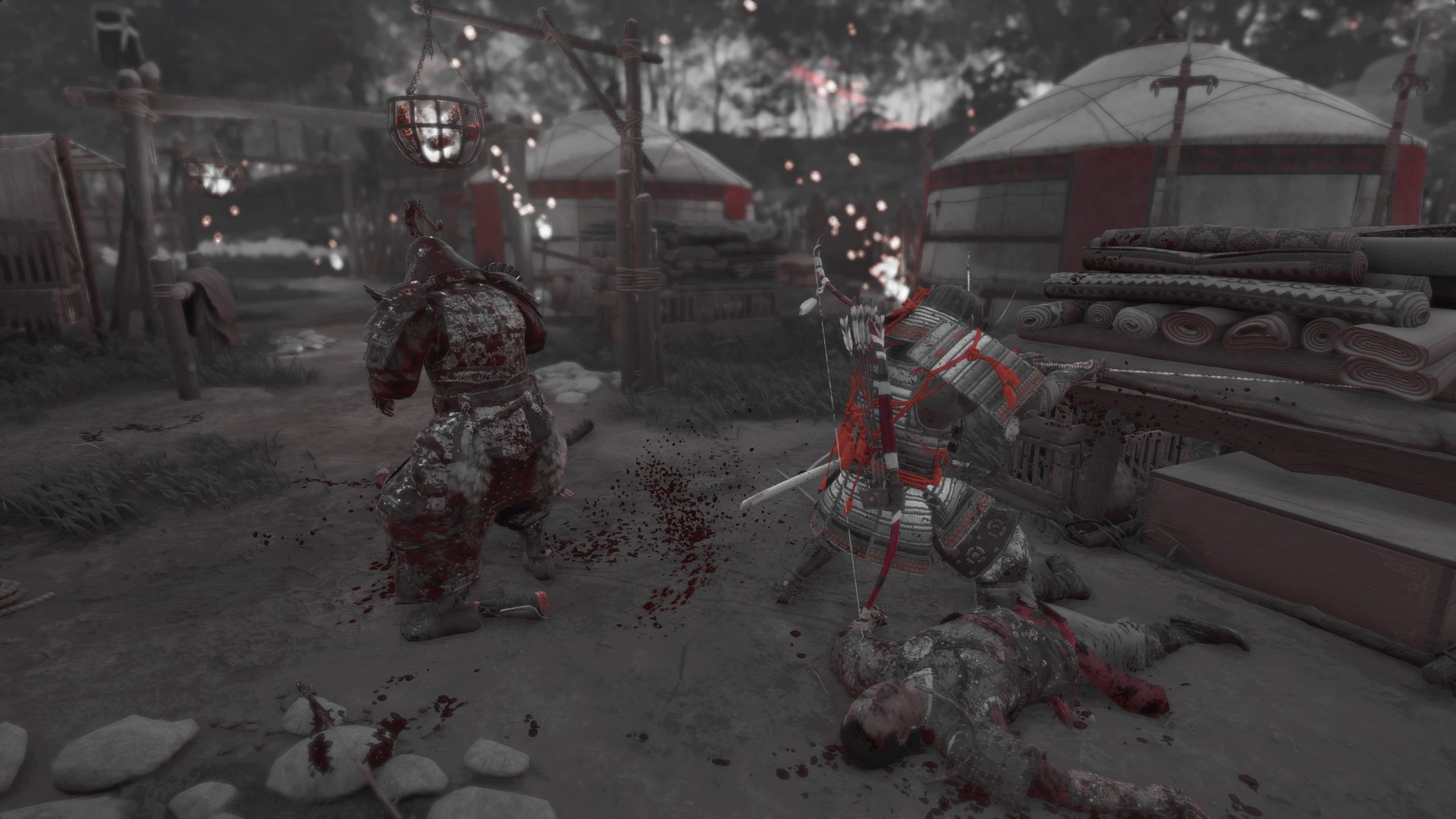 Effectivement ! En soit, le jeu ne propose que du combat tout au long des multiples quêtes. Alors certes, vous devrez apprendre petit à petit à changer votre approche, allant du samouraï au fantôme, mais au final, je suis assez déçu sur ce point. Aucun renouvellement ne s’opère et vous finirez toujours par faire les mêmes choses : Libérer des camps occupés par les Mongoles. Heureusement, une pléthore d’attaques impressionnantes sera mise à votre disposition.