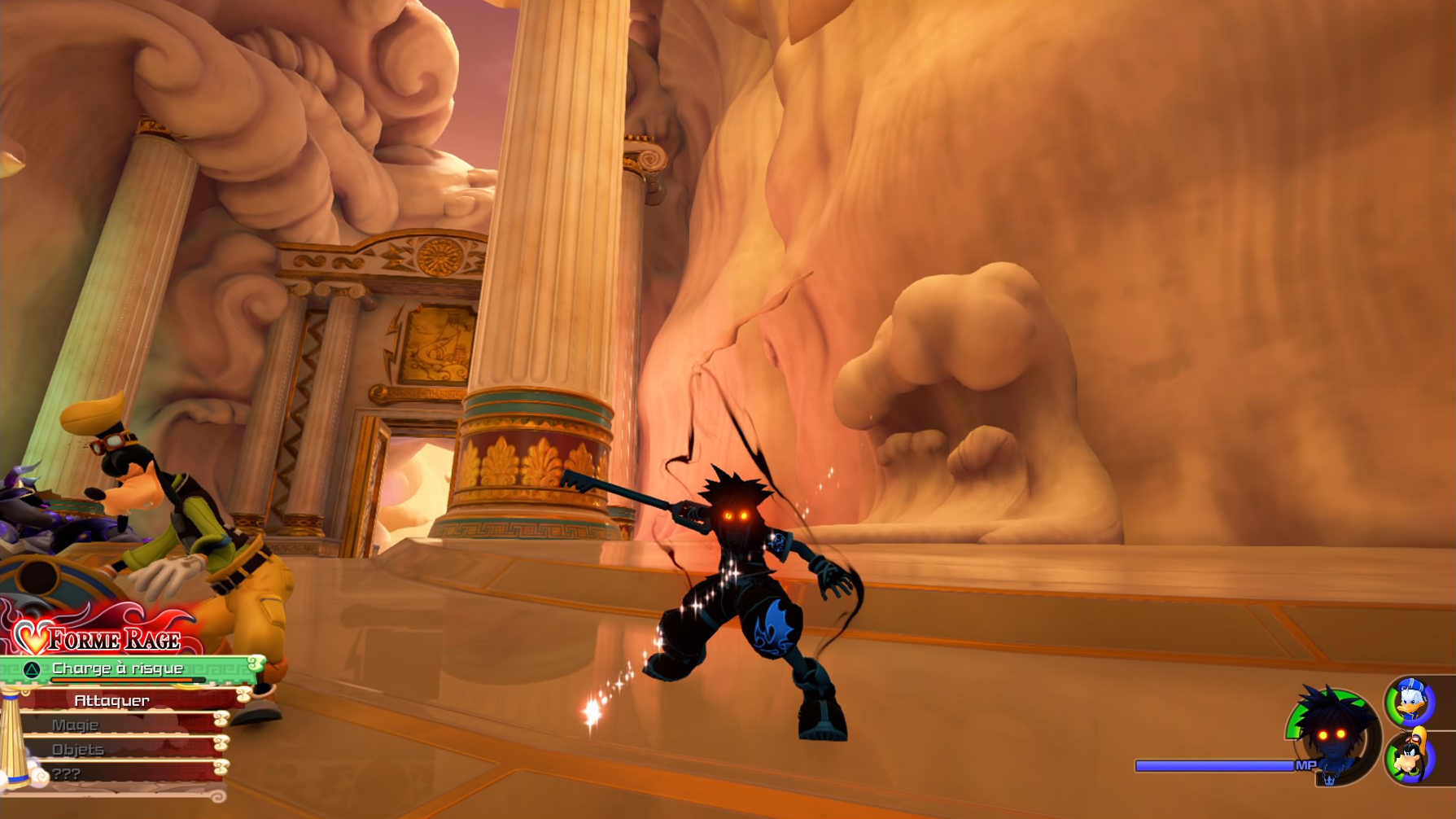 Vous partirez donc affronter les sans-cœurs et autres similis à travers un bon nombre de mondes estampillés Disney et Pixar, aux commandes de Sora, à l’aide de Donald et Dingo. En matière de gameplay, vous n’aurez pas le temps de vous ennuyer ! Malgré les enchaînements de combats qui peuvent paraître répétitifs, les sorts, attractions, transformations et autres invocations viendront agrémenter vos joutes sans merci, pour que ces dernières soient le moins ennuyantes possible. Sachez également que les passages en vaisseau gummi, où vous pourrez toujours customiser votre bolide, ont été eux aussi améliorés. Vous pourrez dorénavant vous balader dans l’espace comme bon vous semble, à la recherche de nouveaux mondes et autres bonus à collecter.