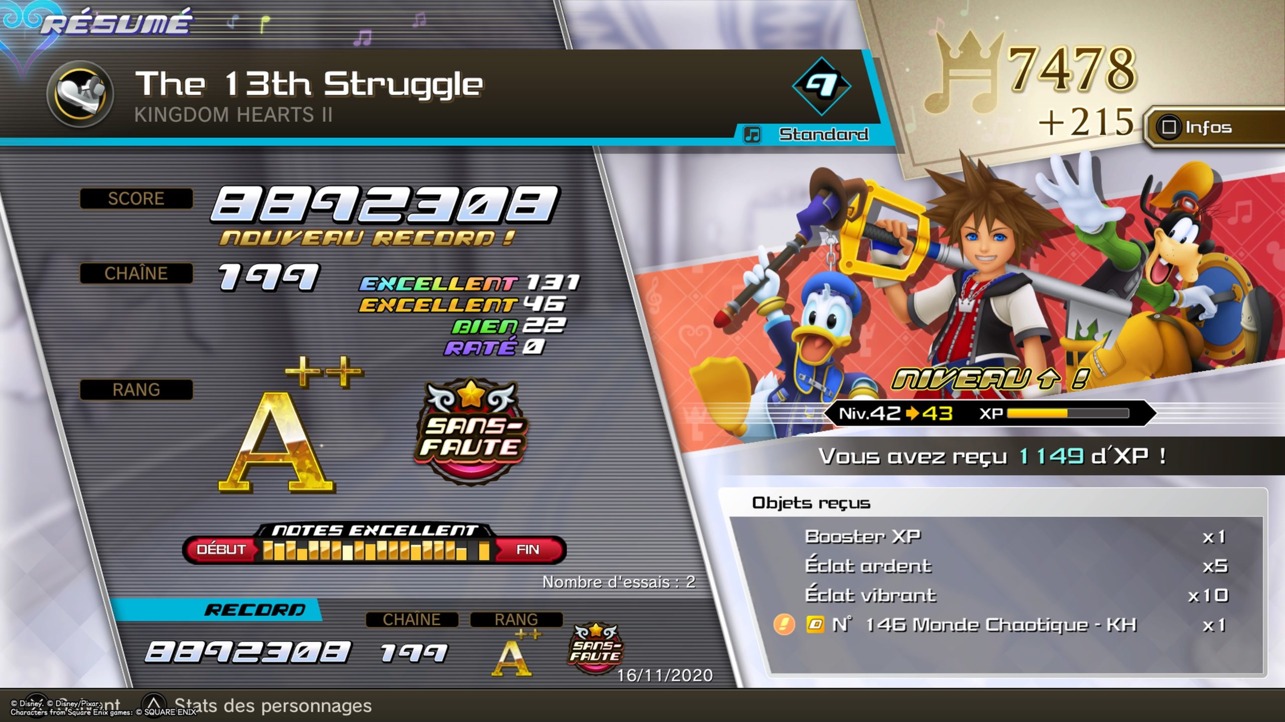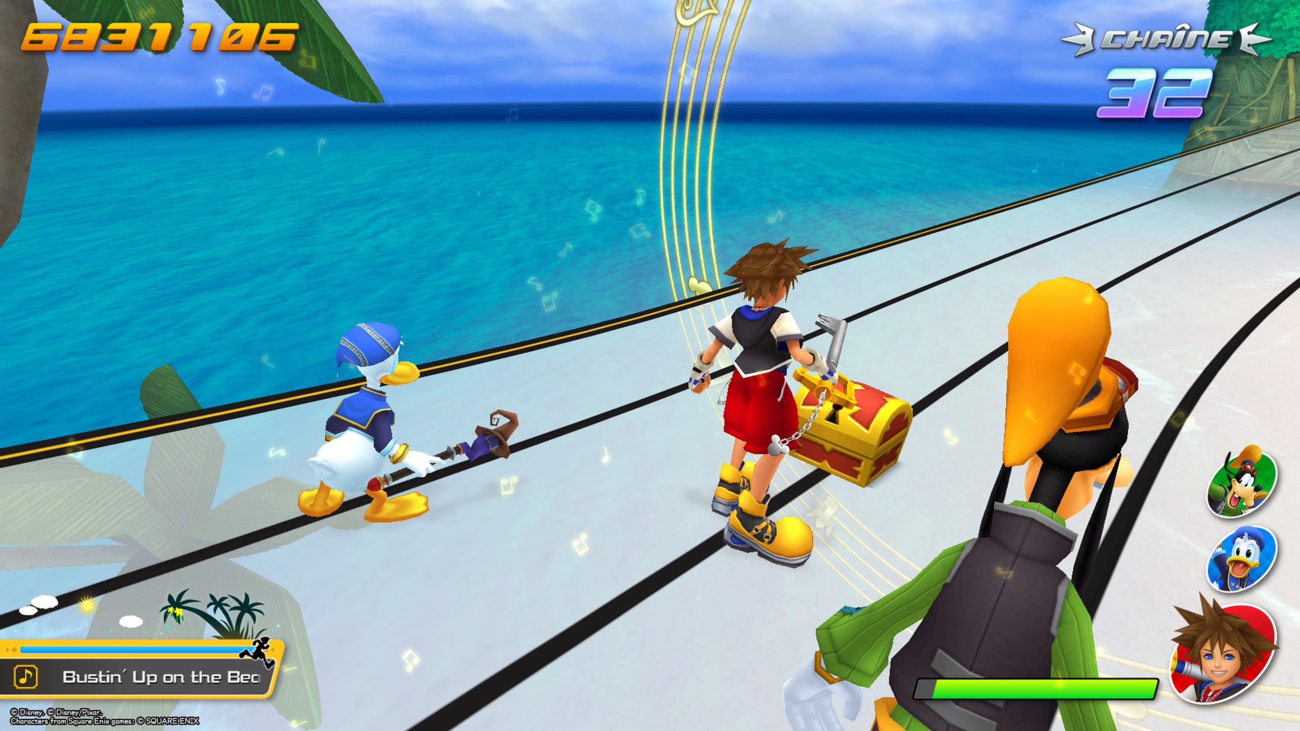 Retraçant les évènements de tous les épisodes précédents, ainsi qu’un nouveau chapitre inédit, un peu court mais qui promet une suite aux aventures de Sora, l’histoire reste tout de même un peu en retrait tout du long. Mais avec sa rejouabilité qui offre au titre une excellente durée de vie, sans compter les nombreux bonus à collectionner, ce KH:MoM est une véritable pépite, dans la lignée des Theatrhythm. Je regrette tout de même l’impossibilité d’inviter des amis en ligne, afin de les affronter.