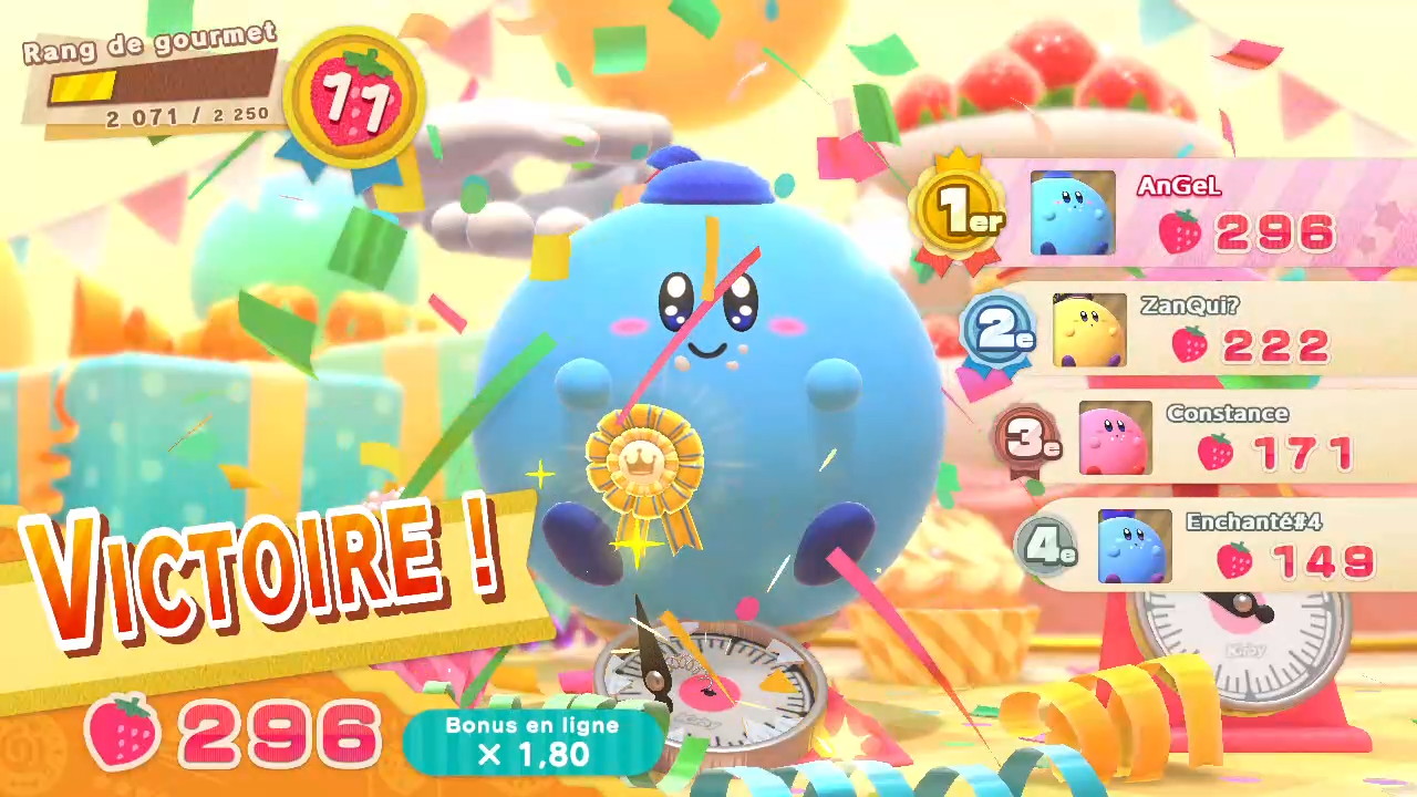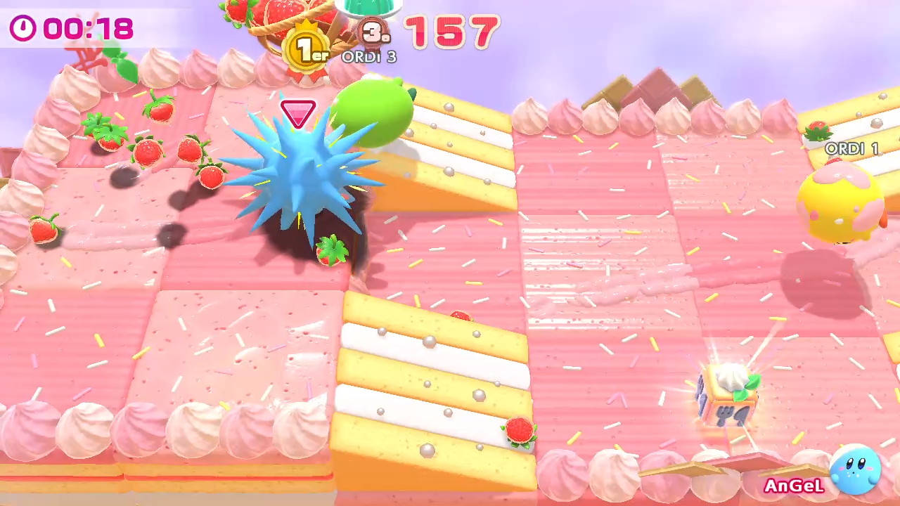 Avec sa prise en main simple et agréable, le soft de HAL Laboratory et Nintendo est à la fois amusant et surtout efficace. Le but ? Arriver premier en mangeant le plus de fruits et autres pâtisseries au passage. Seulement voilà, on en fait vite le tour, d’autant plus que le jeu en devient très vite ultra répétitif ! Autre détail, en ligne le titre souffre de ralentissements qui rendent les courses plus frustrantes. Reste que j’ai apprécié l’univers mignon et coloré comme sait si bien le faire la firme japonaise.