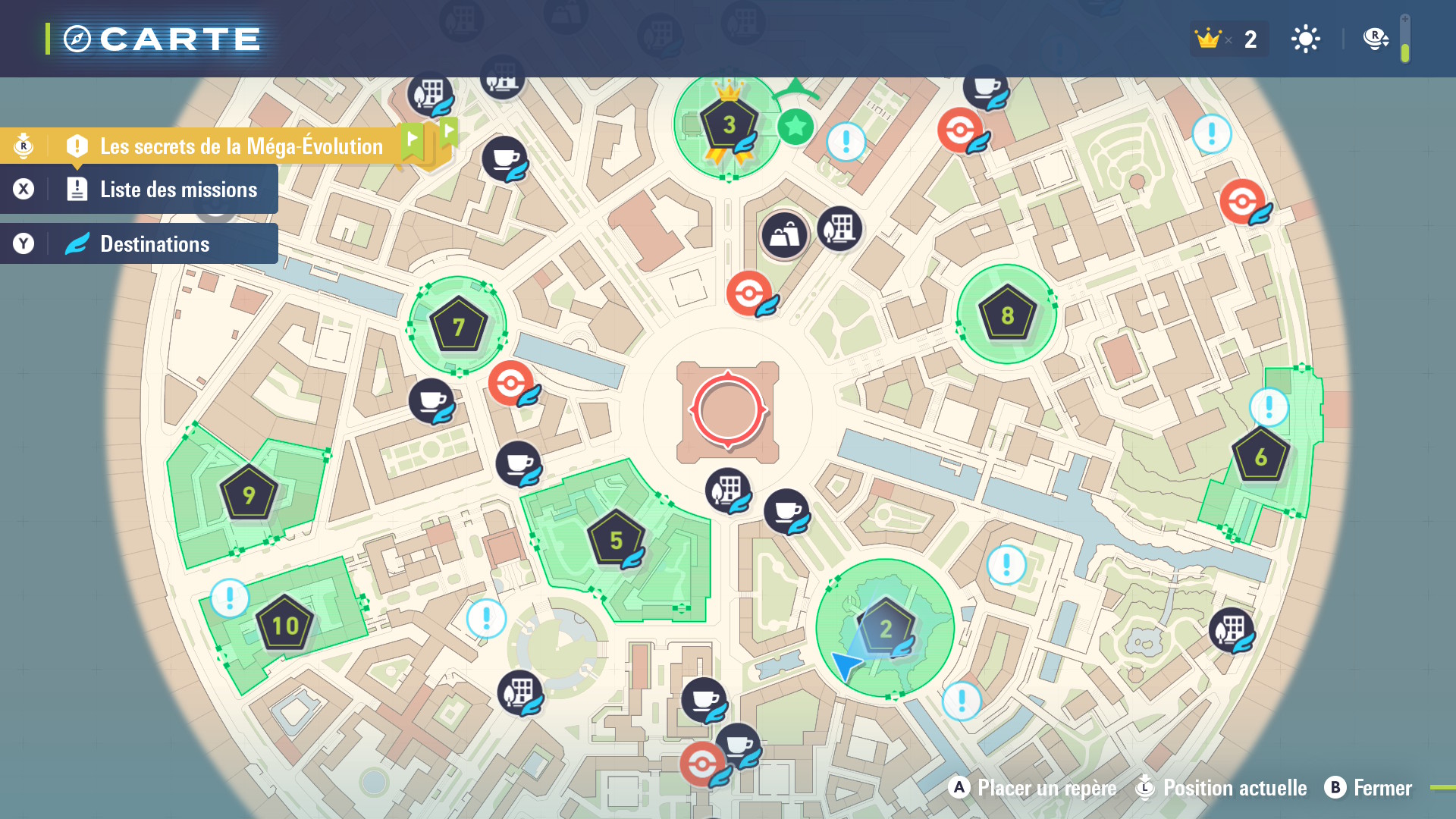 Dans Pokémon Z-A, vous devrez chasser les monstres de poche dans les parcs le plus souvent en journée. Car la nuit tombée certains quartiers se transformes en arènes de combats. Ces derniers vous feront obtenir un ticket permettant d’affronter des adversaire plus coriaces afin de passer de rang. Vous l’aurez compris, votre but sera de passer du rang Z le plus bas, au rang A le plus élevé ! Le jeu propose également des annexes sous forme d’enquêtes et d’affrontements. Enfin, pour sauver Illumis de la catastrophe annoncée, vous devrez vous mesurer à des pokémon méga-évolués. Ce que j’ai particulièrement apprécié, c’est que le joueur ne reste pas passif… Il peux se mouvoir pour éviter les attaques, etc.