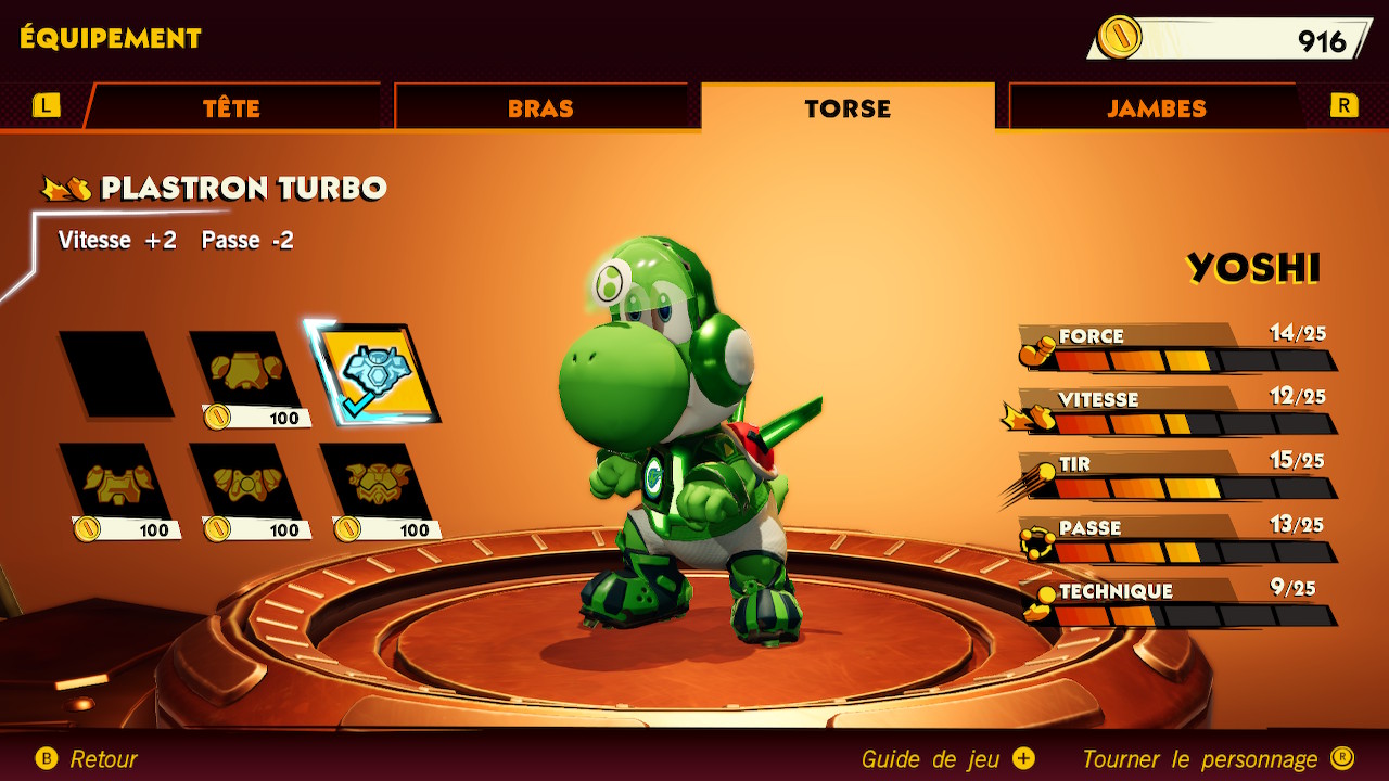 D’un point de vue gameplay le soft est plus technique qu’il ne paraît, et ce grâce à un système de timing précis pour améliorer chaque action. Le gros souci reste la lisibilité qui rend les matchs parfois brouillons. Heureusement, petite astuce, il est possible dans les options d’activer une « aide visuelle » qui honnêtement améliore grandement cette lisibilité ! De plus, je vous conseillerai de ne pas jouer en automatique pour pouvoir vous situer plus facilement sur le terrain. Bien que cela reste un avis personnel. Remporter des matchs ou des coupes vous fera gagner des pièces pour acheter et modifier l’équipement de vos personnages. Une véritable bonne idée !! De plus, si vous jouer pour un club, vos points vous permettront d’acheter de nouveaux éléments pour ce dernier.