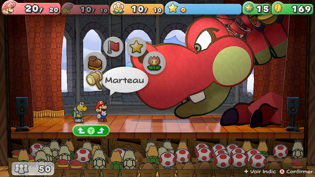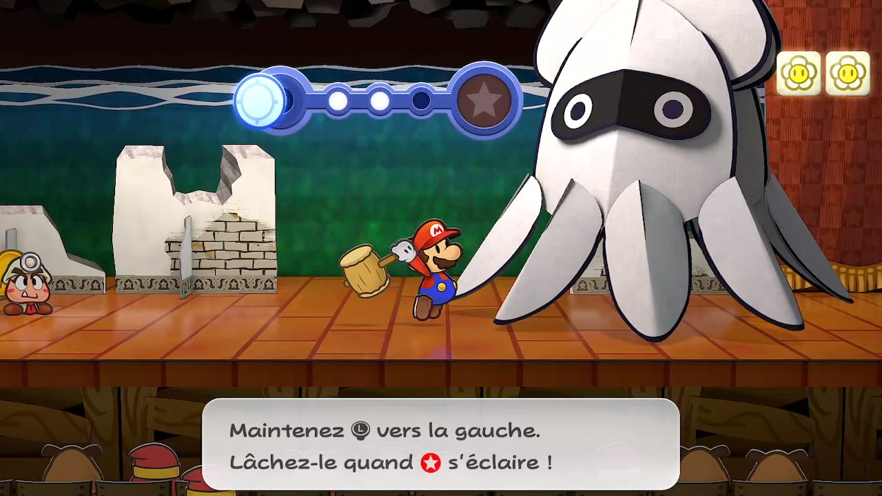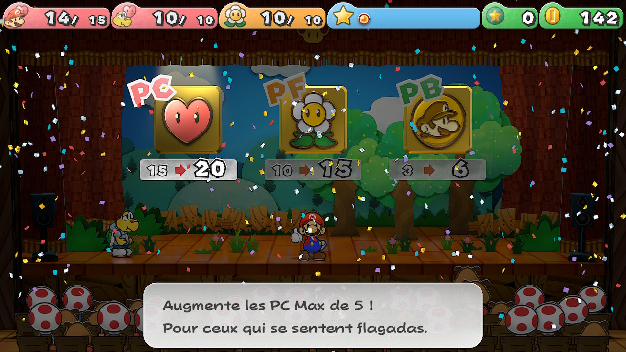 Tout d’abord, je dois avouer que le côté décors en cartons est plutôt bien fichu. Il faut dire que le titre est visuellement très réussi ! Bon, c’est vrai que l’on est sur switch, mais le travail apporté sur ce remaster n’est pas négligeable. J’ai vu quelques comparaison avec la version GC, c’est un peu plus joli et coloré avec des effets supplémentaires, bref… j’adore. D’un point de vue gameplay, j’ai découvert un RPG assez original. Surtout en combat j’ai trouvé cela bien sympathique ! Selon le coup que vous choisirez de faire, il y aura une manipulation plus ou moins simple à effectuer. Si vous ratez cette dernière, votre attaque sera moins efficace voir totalement nulle. Vous aurez également la possibilité de contrer une attaque adverse avec un principe de timing. Le tout accompagné d’une excellente OST retravaillée !! (Vous pourrez également choisir de mettre les musiques de la version GC.)