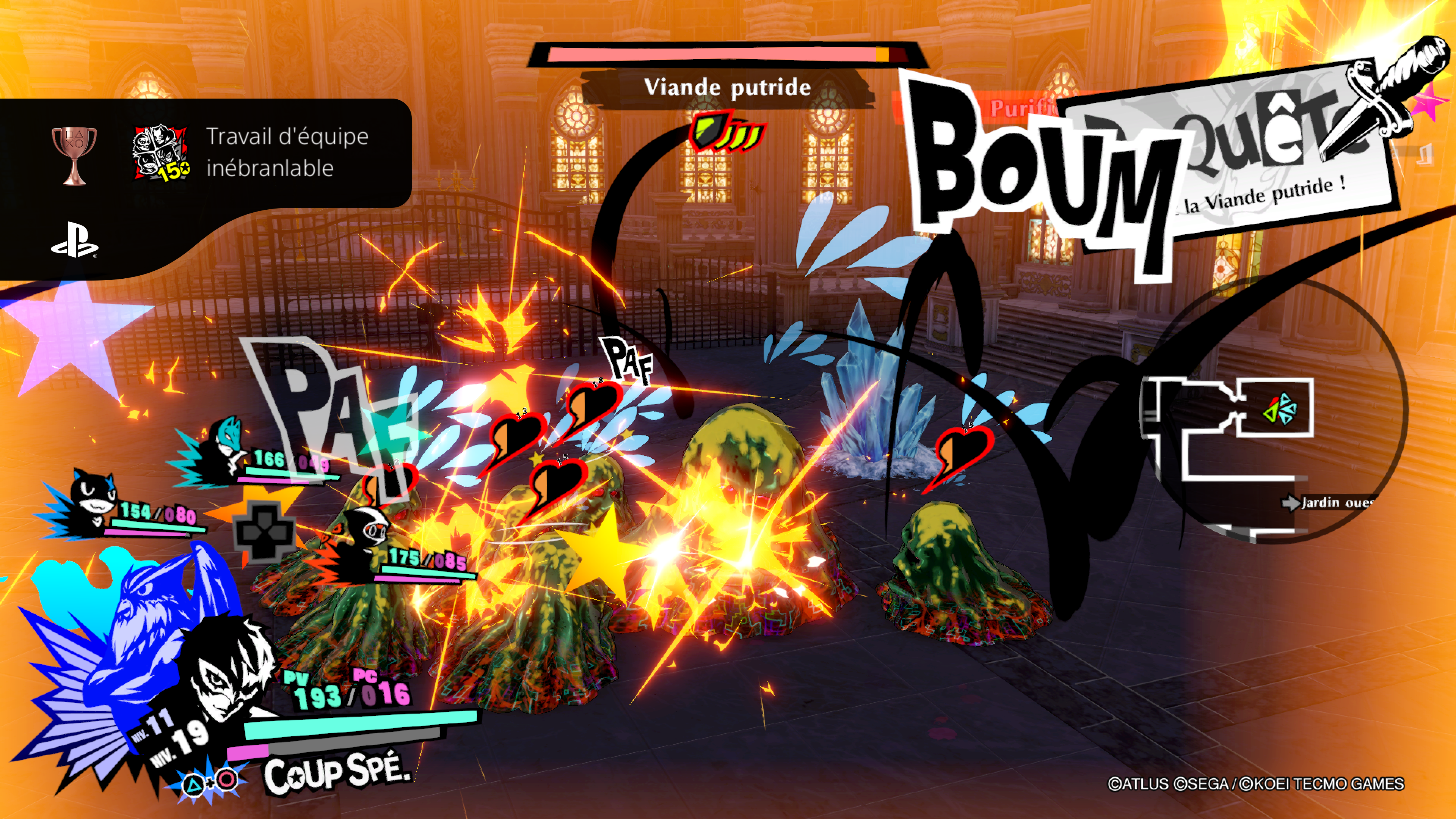 Effectivement, il se trouve que ce P5S est, à l’instar de son prédécesseur, un petit bijou rempli d’innombrables qualités. À commencer par sa sublime direction artistique, toujours aussi plaisante, fraîche et dynamique. Alors il est vrai que, techniquement en retard, le titre n’est pas aussi joli qu’on le voudrait, mais il serait dommage de lui en vouloir uniquement pour cela… D’autant plus que d’un point de vue gameplay, ce dernier se montre très recherché, accessible et jouissif ! Bien évidemment, le jeu sera assez répétitif, puisque ayant un côté musō, cela s’y prête forcément. Mais avec la multitudes d’actions possibles, cette répétitivité ne sera pas aussi lassante que prévue. Le casting complet est présent et ce dès le début de votre périple, vous pourrez ainsi switcher de protagoniste, attaquer, utiliser la magie de vos Persona ou encore lancer un finish move… L’action et les phases d’infiltration s’enchaineront à merveille, le tout accompagné par une OST digne de l’univers P5. Un véritable régale, vous dis-je !
