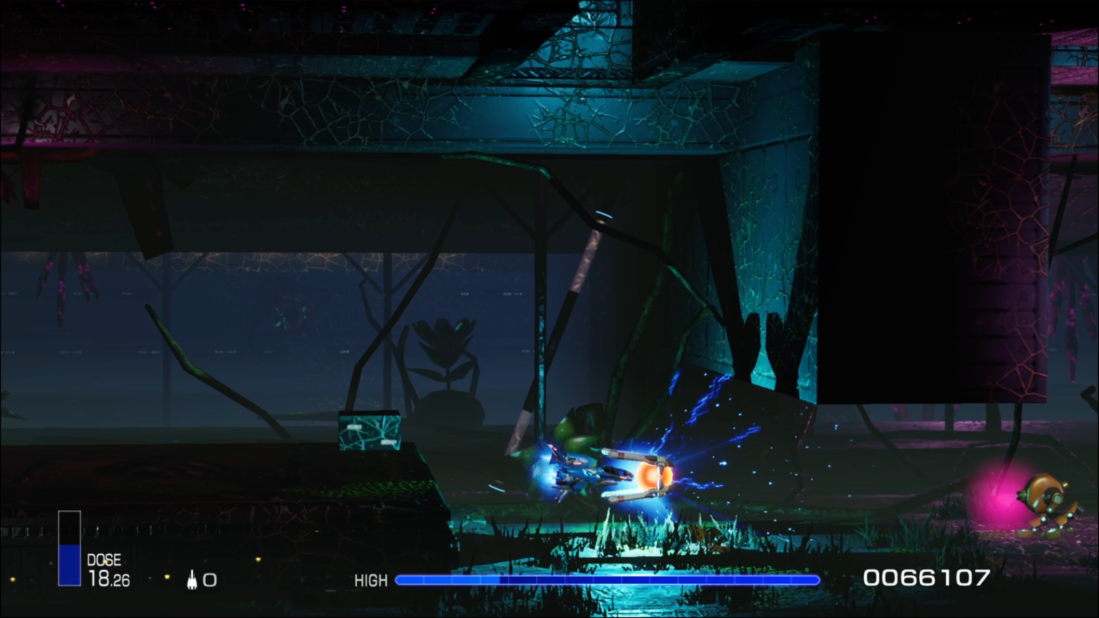 Sur le papier ce titre avait tout pour me plaire. Jouer à un nouvel opus du célèbre shooter R-Type sur consoles actuelles, avec la possibilité de personnaliser ses vaisseaux, me paraissait être grandiose ! Oui, seulement voilà… Tout commence plutôt mal, et ce dès le lancement d’une partie !! Déjà, graphiquement parlant le soft est décevant, mis à part les superbes effets lumineux, ce jeu semble dater d’une autre époque surtout au niveau des textures. L’action est assez mollassonne, le vaisseaux est un peu lent… Alors certes, vous aurez la possibilité d’améliorer quelque peu cela après de nombreuses heures de jeu, mais franchement ça ne donne pas envie. La campagne est plutôt courte et j’ai trouvé, bien qu’étant une vraie quiche, que le jeu était tout de même plus accessible que ses prédécesseurs. Certains le trouveront peut-être même trop facile !