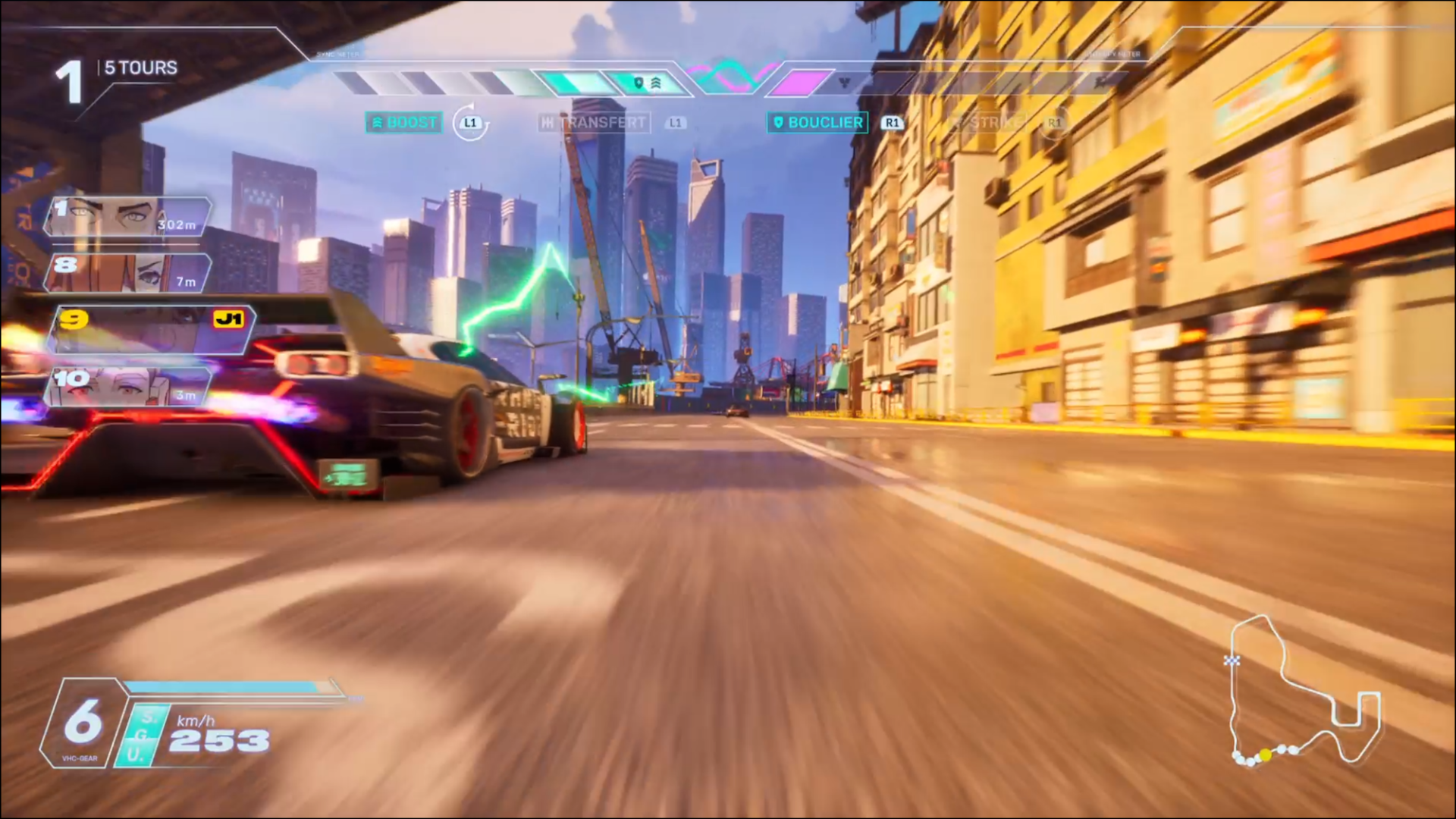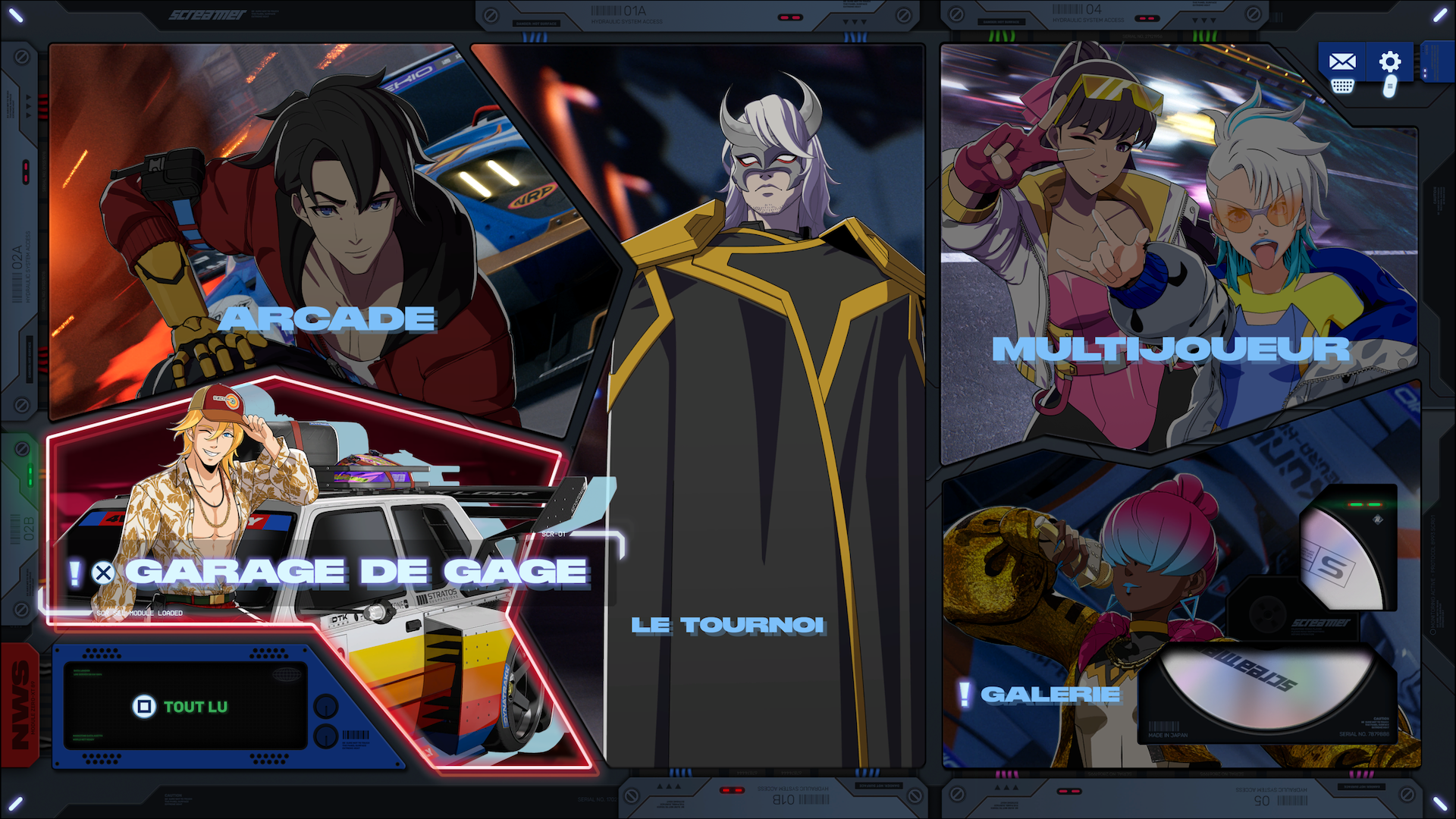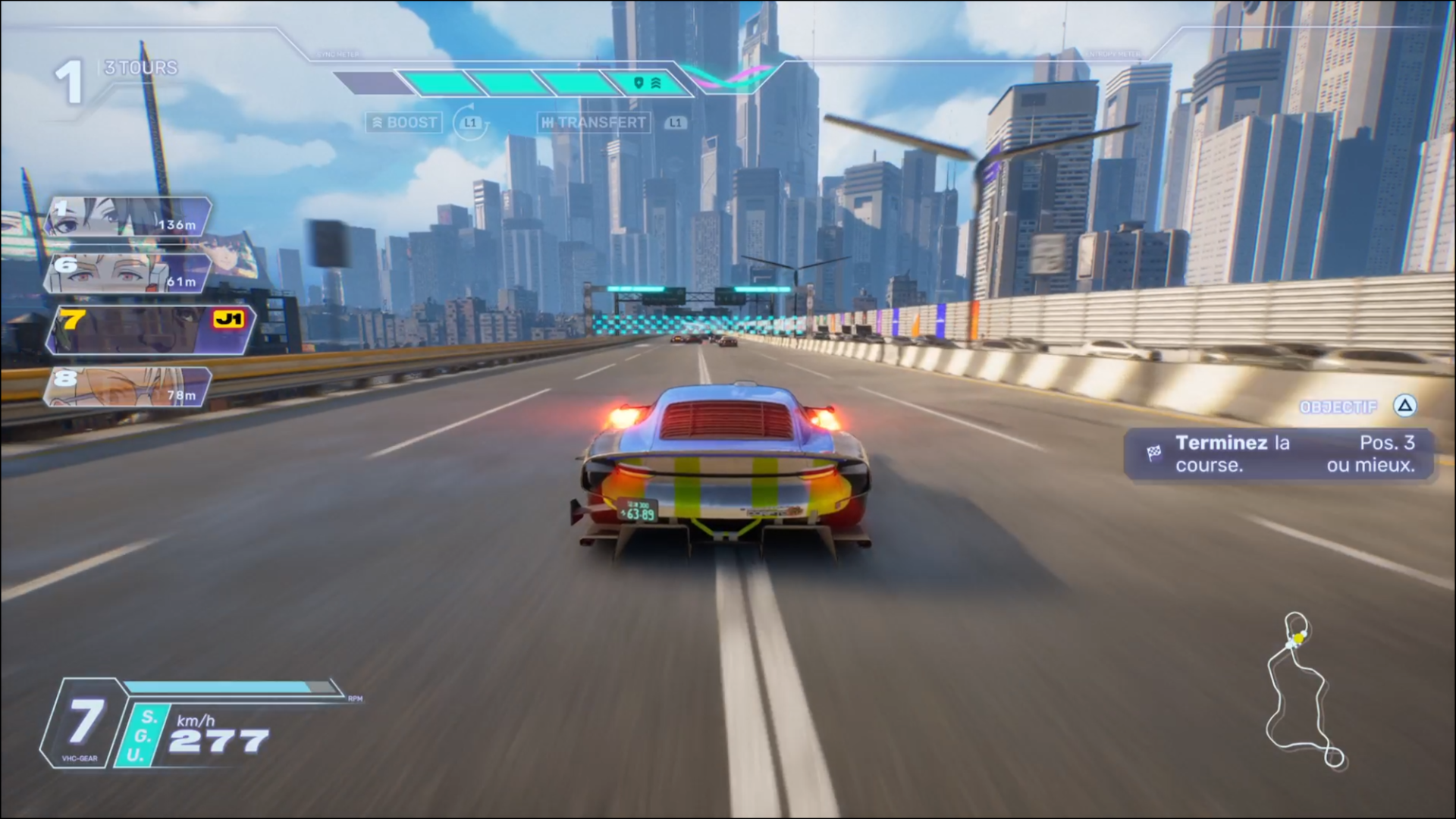 J’ai apprécié le mode tournoi pour son histoire qui se laisse suivre, ses cinématiques en animé etc. Malheureusement certaines missions risquent de vous bloquer, soit par un intitulé pas très clair, soit par la difficulté… Attendez vous donc à des pics de difficulté frustrants, qui freineront votre ascension. Le titre propose également d’autres modes de jeu, plus ou moins classiques, avec une mention spéciale pour le multi en local, jusqu’à 4 joueurs ! Autrement, le soft est franchement réussi pour sa Direction Artistique, son OST et ses doublages ! Bien que j’aurais préféré qu’ils soient entièrement en français. Pour finir, ce Screamer m’a fait pensé à un certain Ridge Racer, ce qui est pour moi un gage de qualité !!
