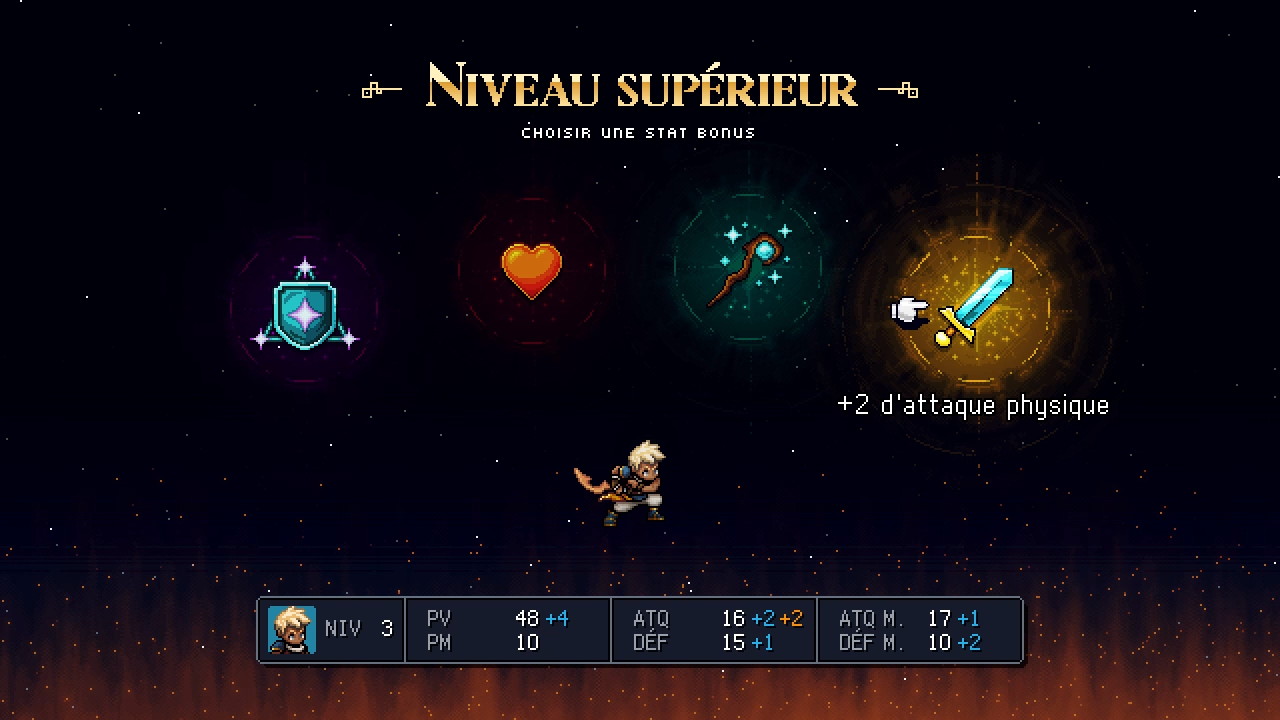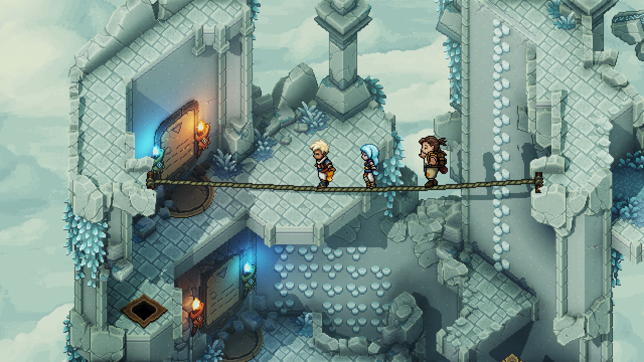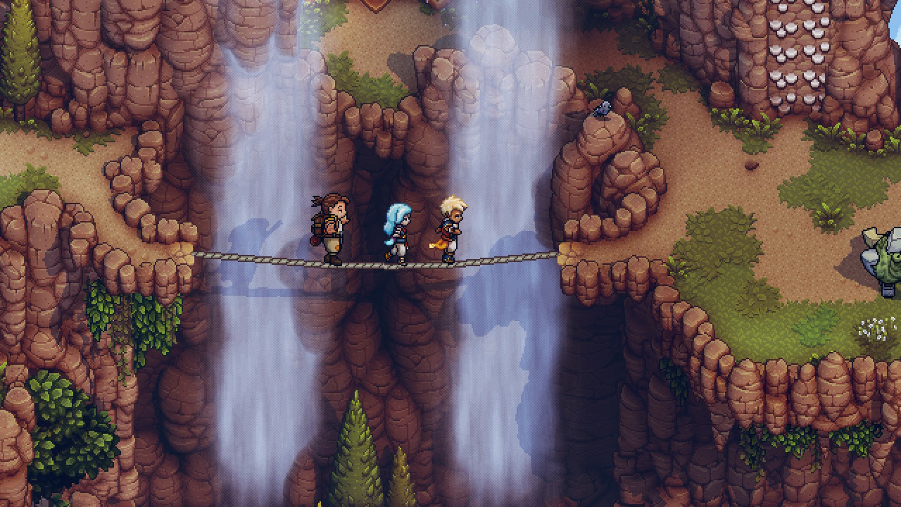 Et comment ne pas parler de la Direction Artistique avec son Pixel Art de toute beauté ?! C’est un émerveillement de chaque instant de voir à quel point c’est propre, notamment sur les effets de lumières. L’OST elle aussi est de bonne qualité et accompagne parfaitement l’action. Vous commencerez le jeu en choisissant un des deux principaux protagonistes (Zale ou Valere), qui se lanceront ensemble dans une épopée au scénario intéressant, bien que rempli de stéréotypes, qui vous gardera en haleine tout du long. Les personnages sont attachants, j’ai particulièrement aimé le trio de base avec Garl qui apporte un vrai plus. J’ai également apprécié les énigmes, qui sont assez ingénieuses et bienvenues, et le level-design des différents passages tout aussi réussi. Dommage cependant que certains combats trainent en longueur… Au final, ce soft est une véritable petite pépite que je vous conseille bien évidemment !