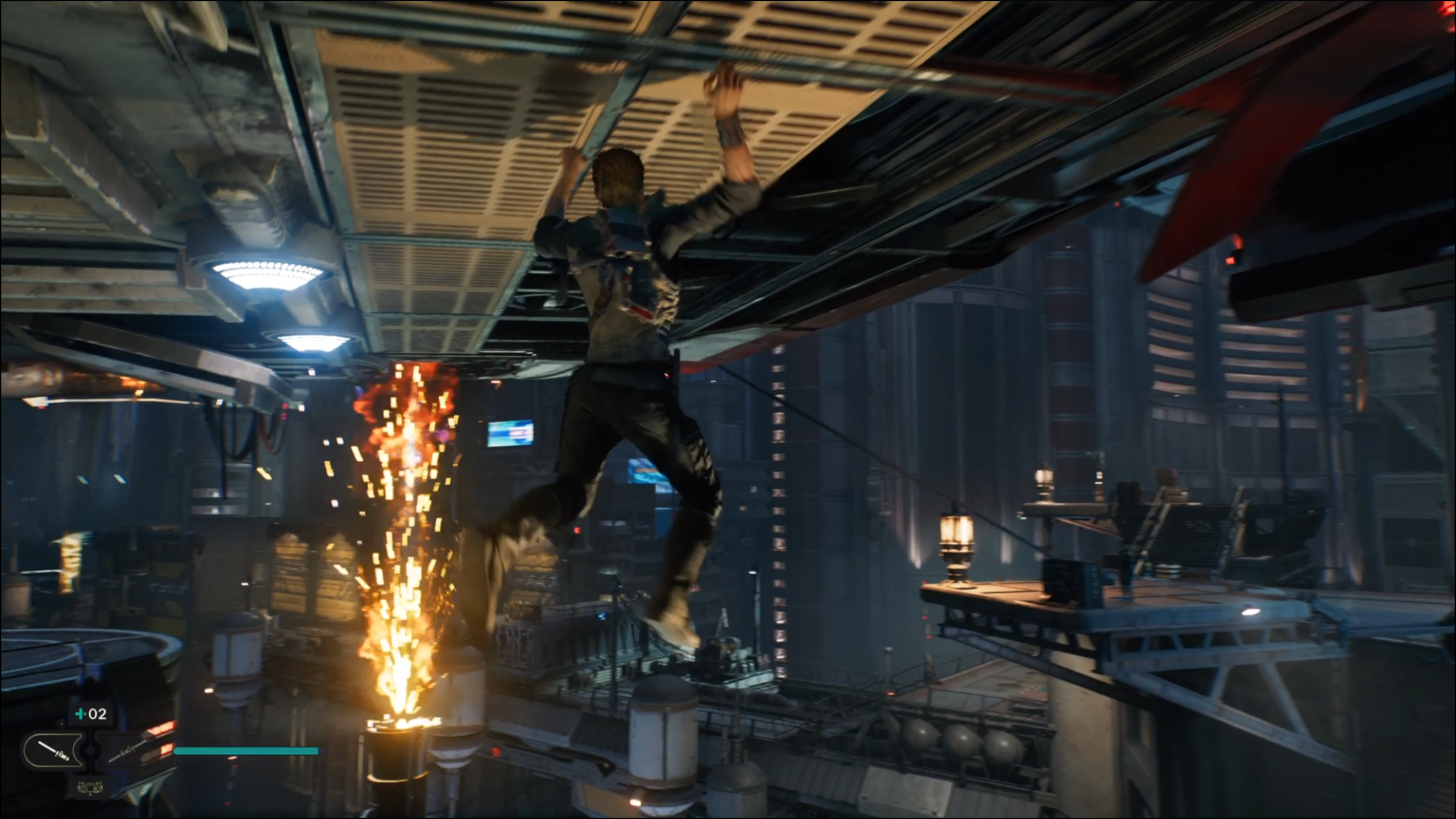 Le monde de ce Jedi : Survivor se veut plus ouvert qu’auparavant et techniquement parlant c’est du solide ! Les panoramas et décors sont magnifiques, bien qu’inégaux je dois l’avouer. Le level-design est ingénieux et vous demandera de revenir pour découvrir de nouvelles zones une fois l’histoire avancée. Effectivement, il y a beaucoup à découvrir et à débloquer, comme des éléments cosmétiques etc. Au total, il vous faudra +30h pour finir le jeu en ligne droite et une vingtaine de plus pour les complétionnistes.