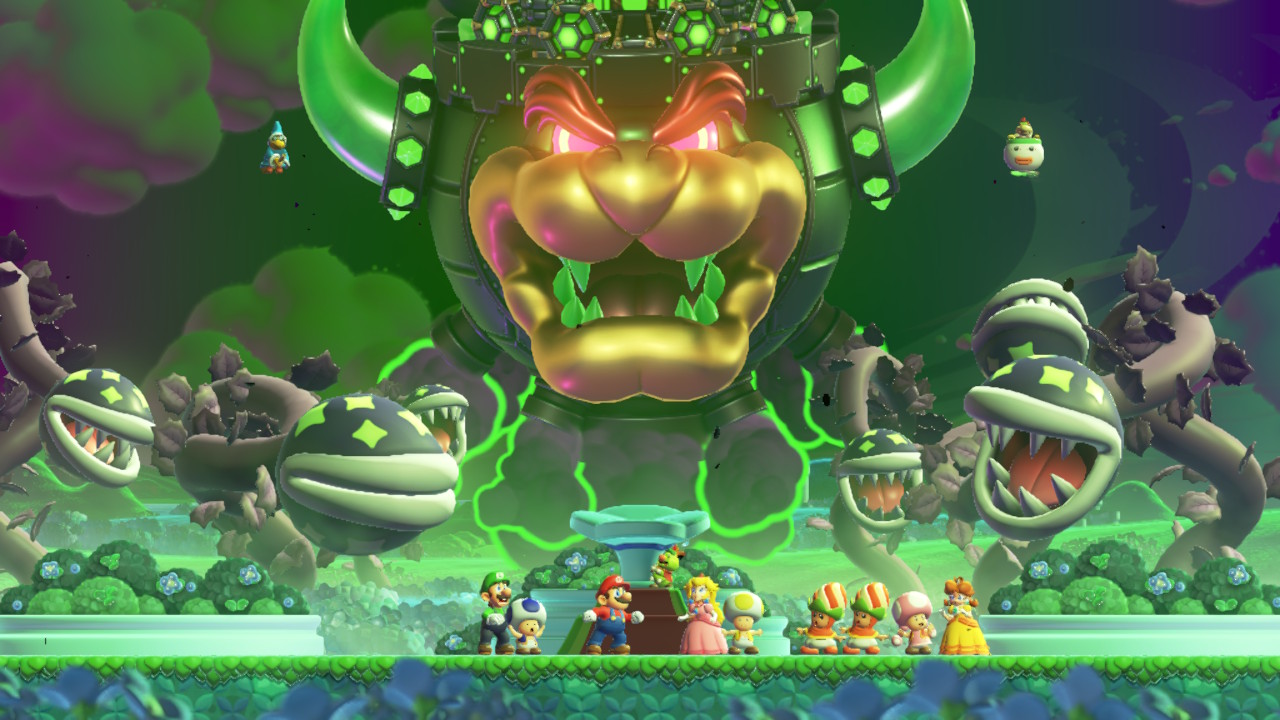 Oublier pour une fois le Royaume Champignon. Ici, au Royaume des Fleurs, il ne faudra pas sauver la princesse Peach. Alors oui Bowser reste de la partie, mais sous une forme inédite, pour ne pas trop vous spoiler. Choisissez, parmi le panel de personnages, qui devra déjouer les plans du plus célèbre des antagonistes. Tout est fait pour vous divertir ! Parcourez donc les niveaux à la recherche de graines royales, à travers de multiples tableaux tous plus surprenants les uns des autres, notamment grâce aux fleurs prodiges ! Ces dernières ont tendance à transformer l’environnement et le rendre plus vivant que jamais. C’est simple cela donne parfois l’impression d’être sous opioïdes, tellement c’est perché ! Souvent comparé à une comédie musicale ce « Mario Wonder » est effectivement riche de par son OST et ses bruitages.