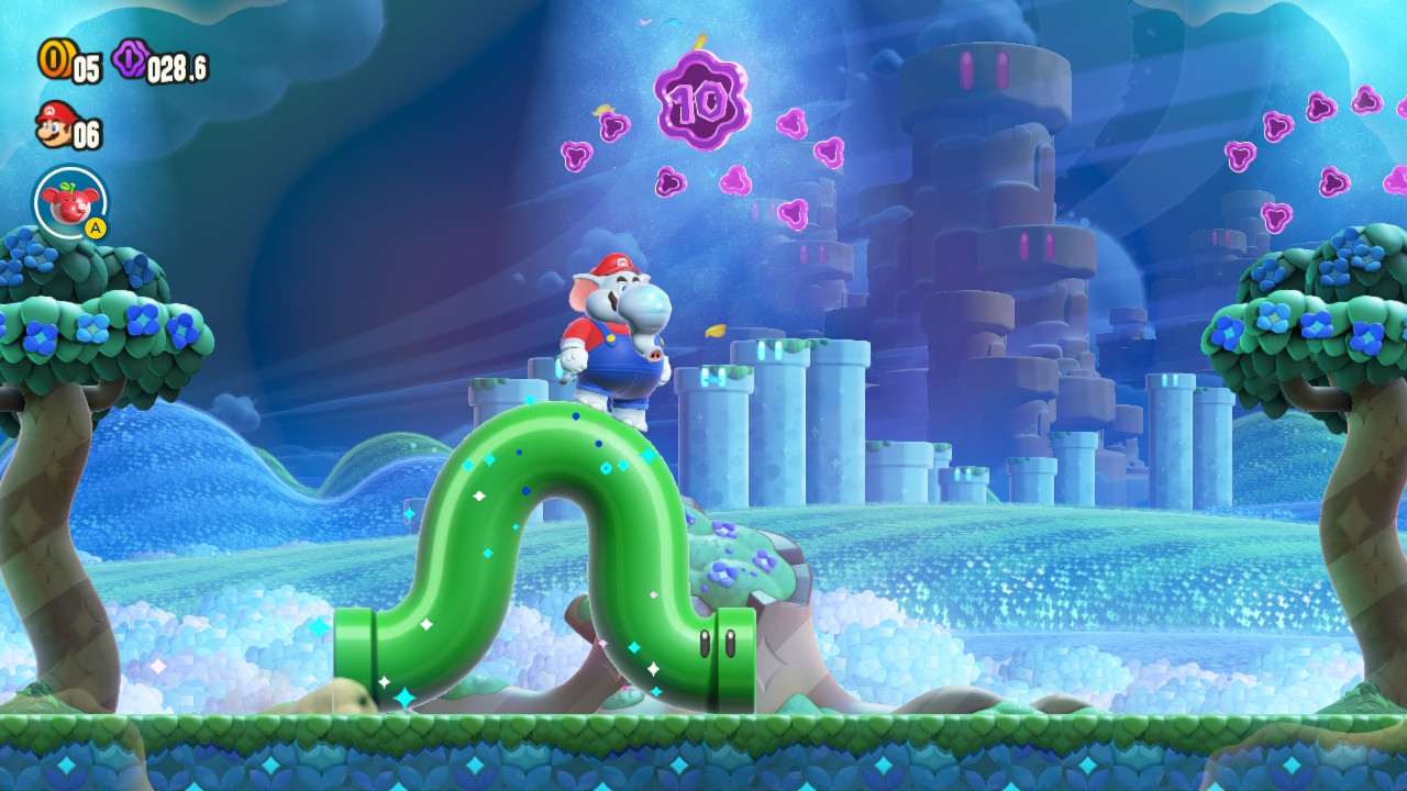Avec son gameplay maîtrisé, son level-design ingénieux rempli de secrets, vous allez vous amuser à coup sûr ! Hormis la difficulté de certains niveaux qui vous donneront l’envie de vous arracher les cheveux… L’ensemble reste accessible et surtout fun, notamment en multijoueurs. Le tout est rempli d’idées innovantes, avec également les badges de capacités, les fleurs prodiges etc. J’ai adoré la Direction Artistique du soft elle aussi remplie de détails un peu partout. Les animations ont également été revue et enrichies, comme quand par exemple Mario Éléphant se glisse avec difficulté dans un tuyau. Ça paraît presque rien et pourtant ça donne plus de vie et de cohérence au titre. De nouveaux ennemis font leur apparition à l’instar des nouveaux power-up. Seul bémol : les boss peu nombreux et sans grands intérêts. Au final, ce titre est vraiment un incontournable de la Switch cette année, tellement Nintendo maîtrise son sujet à la perfection.